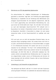 -12- 2. Eliminieruna von PCS als potentieller Wettbewerber Die einleuchtendste Art, mögliche Veränderungen im Wettbewerbs- geschehen zu beurteilen, liegt darin, die Verteilung des gegenwärtigen Marktanteils zu vergleichen mit der Verteilung eines Marktanteils nach erfolgtem Zusammenschluß. K+S GmbH gegenwärtig Es wird allgemein angenommen, eine dominierende Marktstellung daß die hat, was auch immer die Gründe dafür sein mögen. Sie wird aber nicht dominan- ter nach dem beantragten Zusammenschluß. PCS verkauft nicht in Deutschland, hat niemals in Deutschland verkauft und sieht auch keiner- lei Möglichkeit, Unterschied Geschäfte in Deutschland zu tätigen. Ich kann keinen sehen, ob der Zusammenschluß nun gebilligt wird oder nicht. PCS wird nach wie vor nicht die besonderen Produkte haben, die am deutschen Markt nachgefragt werden. Wir werden immer noch nicht ei- ne Liefer- und Distributionsinfrastruktur in Deutschland haben, um gegen K+S im Wettbewerb anzutreten. Wir werden nach wie vor von der Ko- stenseite her bei Lieferungen "frei Haus” nicht wettbewerbsfähig sein. Wir werden schließlich keinen Ersatz anbieten können für die Geschäfts- beziehungen, die Kali+ Salz über ein Jahrhundert aufgebaut hat. Wir werden schlicht und ergreifend kein Wettbewerber sein. Es mögen Sei- ten vollgeschrieben werden, warum wir Wettbewerber sein könnten. All dieses beseitigt nicht die schlichte Tatsache, daß wir keine Wettbewer- ber in Deutschland sind. 3, Einbeziehuna in die Preispolitik auf dem Weltmarkt Hier behauptet das BKartA, daß die K+S GmbH nach dem Zusammen- schluß geringeren Einflüssen von außerhalb des deutschen Marktes aus- F\NETUSER\KALER\MSOFFICE\WINWORD\SPEECH.DOC