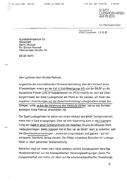 f-50.-1397 89:23 STADT LU BÜRD OB +49 621 584 3781781 S.82783 STADT . LUDWIGSHAFEN AM RHEIN Der Oberbürgermeister Rathausplatz 20 67059 Ludwigshafen, 11. 07. 9 Bundesministerium für Wirtschaft Herrn Minister Dr. Günter Rexrodt Villemombler Straße 76 53123 Bonn Sehr geehrter Herr Minister Rexrodt, angesichts der bevorstehenden Ministerentscheidung über den Verkauf eines 51prozentigen Anteils an der Kali & Salz Beteiligungs AG vonder BASF an die kanadische Potash Corpof Saskatchewan Inc (PCS)möchte ich mich als Ober- bürgermeister der Stadt Ludwigshafen am Rhein an Sie wenden, um Ihnen die negativen Auswirkungen auf die Gesamtentwicklung Ludwigshafens knapp dar- zulegen, sollte es bei der Ablehnung des Verkaufs bleiben, wie es das Bundes- kartellamt Ende Februar entschieden hat. Die Stadt Ludwigshafen ist bisher von einem Verkauf des BASF-Tochterunterneh- mens Kali & Salz ausgegangen. Dies hat sich folgerichtig auch in der Finanzpla- nung der Stadt in einer Größenordnung von zwischen 15 und 20 Millionen Mark niedergeschlagen. Bleibt indessen Kali & Salz bei der BASF, steht zu erwarten, daß die Gewerbesteuerzahlungen - andersals prognostiziert und geplant - auf ver- schiedene Standorte zerlegt werden. Der Effekt: erhebliche Einbußen für Ludwigs- hafen in oben genannter Größenordnung. Sicherlich muß ich Ihnen nicht näher erklären, welche Konsequenzen derartige Mindereinnahmen auf die finanzpolitischen Handlungsbedingungen sowie Pla- nungssicherheit und mithin vor allern auf die arbeitsmarktpolitischen Gestaltungs- /2