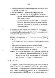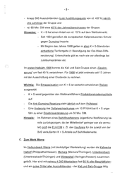 -3- - knapp 390 Auszubildenden (aute Ausbildungsquote von rd. 4,8 %) sämtli- che Lehrlinge der Gruppe und - rd. 60 Mio. DM etwa 45 % des Jahresüberschusses der Gruppe. Hinweise: - K+Shateinen Anteil von rd. 15 % auf dem Weltkalimarkt. - Seit 1994 genießen die europäischen Kaliproduzenten Schutz gegen Dumping-Importe. - Mit Beginn des Jahres 1998 gelten in allen K + S-Standorten einheitliche Tarifentgelte (= Beendigung der Ost-West-Diffe- renzierung). Unterschiede gibt es nach wie vor allerdings bei Jubiläumsprämien etc. Im ersten Halbjahr 1993 konnte die Kali und Salz-Gruppe einen „Gewinn- sprung“ um fast 40 % verzeichnen. Für 1998 ist jetzt erstmals seit 13 Jahren mit der Ausschüttung einer Dividende zu rechnen. Wichtig: Die Ertragssituation von K + S ist weiterhin erheblichen Risiken ausgesetzt: - _K+S weist gegenüber den Weltmarktführern Produktionskostennachteile auf. - Die Anti-Dumping-Regelung steht jährlich auf dem Prüfstand. - Eine Änderung des Dollarwechselkurses um 10 Pf führt bei K+ S unge- fähr zu einer Ergebnisveränderunag um 30 Mio. DM. Hinweis: Im Rahmen eines Beihilfeverfahrens (eigentliche Notifizierung be- reits zurückgezogen, da der Mittelbedarf geringer war als vermu- tet) prüft die EU-KOM z. Zt. den Kaufpreis für die zuletzt von der BvS veräußerten K + S-Anteile auf Beihilfeelemente. . Zum Werk Werra Im Verbundwerk Werra (mit dreiköpfiger Werksleitung) wurden die Kaliwerke Hattorf (Philippsthal/Hessen), Merkers (Merkers/Thüringen), Unterbreizbach (Unterbreizbach/Thüringen) und Wintershall (Heringen/Hessen) zusammen- gefaßt. Hier sind mit nahezu 4.000 Mitarbeitern fast 50 % aller Beschäftigten - und ein qutes Drittel aller Auszubildenden - der Kali und Salz-Gruppe tätig.