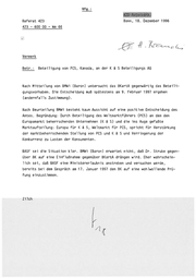 Vfg.: Referat 423 Bonn, 18. Dezember 1996 423 - 600 00 - We 66 l c n e r AT H b Vermerk Betr.: Beteiligung von PCS, Kanada, an der K & S Beteiligungs AG Nach Mitteilung von BMWi (Baron) untersucht das BKartA gegenwärtig das Beteili- gungsvorhaben. Die Entscheidung muß spätestens am 9. Februar 1997 ergehen (andernfalls Zustimmung). Nach Beurteilung BMWi besteht kaum Aussicht auf eine positive Entscheidung des Amtes. Begründung: Durch Beteiligung des Weltmarktführers (PCS) an dem den Europamarkt beherrschenden Unternehmen (K & S) und die ins Auge gefaßte Marktaufteilung: Europa für K & S, Weltmarkt für PCS, spricht für Verstärkung der marktbeherrschenden Stellung von PCS und K & S und Verringerung der Konkurrenz zu Lasten der Konsumenten. BASF sei die Situation klar. BMWi (Baron) erwartet nicht, daß Dr. über BK auf eine Einf lußnahme gegenüber BKartA drängen wird. lich sei, bereits Eher wahrschein- daß BASF eine Ministererlaubnis anstreben und versuchen werde, bei dem Gespräch am 17. fung einzustimmen. Zilch Strube gegen- Januar 1997 den BK auf eine won lwollende Prü-