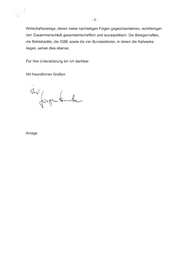 -3- Wirtschaftszweige, denen keine nachteiligen Folgen gegenüberstehen, rechtfertigen den Zusammenschlul gesamtwirtschaftlich und sozialpolitisch. Die Belegschaften, die Betriebsräte, die IGBE sowie die vier Bundesländer, in denen die Kaliwerke liegen, sehen dies ebenso. Für Ihre Unterstützung bin ich dankbar. Mit freundlichen Grüßen du/ [ N Anlage