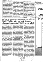 HEIDST AuL Uct Dass vuu vun eröffnet, daß zwe Unternenmen die Zukunft gemeinsam besser zu überstehen vermögen, als wenn sie gungenbei 1400 Unternehmenmit fast 600000 Beschäftigten von den fünf Ruhrkammern erstellt wird. . *“älleine blieben. Und die “jüngste Borgmanns Wortin Gottes Ohr!” Doch bleibt zu fragen, oberdennin den vergangenen Wochennicht die Gazetten und elektronischen Me- dien verfolgte, als das mittels vie- ler Fakten, aber auch aufwendiger Werbe- und PR-Aktionen mühsam aufgepäppelte Image des Reviers bereits starkt demoliert wurde. So sehr man der Betroffenheit der Hoesch-Arbeiter, die sich gegen eine gewisse Zeit Überlebensper- spektiven gezeigt — wenn auch in wesentlich verkleinertem, volks- wirtschaftlich eher bezahlbarem Rahmen. Die Ruhrwirtschaft ist alles in allem nach wie vor auf einem gu- ten Weg. Der Strukturwandel hat sie robuster werden lassen. Ihr den neuen Arbeitgeber aus Essen größter Widersacherbestehtin der sträuben, als sei er der leibhaftige negativen Publizität, die immer Gottseibeiuns, zunächst noch mit wieder von den Ereignissen ausge- Verständnis begegnen konnte, so löst wird, die in Wirklichkeit den inzwischen die dem- Prozeß der Umstrukturierung wei- negativ sind agogisehen Aktionen im Dortmun- r Kohlenrunde hat trotz vieler har- ter Konsequenzen der Kohle für ter nach vorne bringen. 25 % der Anteue enulau. Vorstand weitere Ansatzpunk Wie Vorstandsprecher-Günter Dar- - tersuchungenenthält." asz auf Anfrage bestätigte, fand auf In diesem anonymen Papie: Betreiben der Familie Hohner eine Präsidentin Birgit Breuel, Einzelabstimmungbei den Vorstands- Handelsblatt vorliegt, wird u. mitgliedern statt. Vorstandsmitglied Friedrich Liegert erhielt rund 69 000 Gegenstimmen bei insgesamt rund 351 000 vertretenen Stimmen, die eine Leipziger F Präsenz von 87,7 %darstelllten. Dage- gen wurde Günter Darasz, der erst Endedes vergangenenJahres zu Hoh- ner kam,bei nur wenigen Gegenstim- men entlastet. Die Aktionäre billigten die Schaf- fung eines genehmigten Kapitals von 10 Mill. DM. Die Kapitalerhöhungsoll bald folgen. Mit den Mitteln will die Unternehmensleitung Verbindlichkei- ten des hochverschuldeten Unterneh- mens abbauen und die Pro nmo- derniseren. 5.-10. Mär: ei To, 7 v.T Fi nd "KALI + SALZ AG / Weiterhin Verluste im Düngemittelgeschäft — Keine Fusion mit MDK BASF-Tochter setzt auf weitreichende Kooperation mit der Mitteldeutschen Kali sparungenin zweistelliger Millionen- HANDELSBLATT,Donnerstag, 14.11.1991 Andererseits sieht er jedoch die shf KASSEL. Die Kali + Salz AG, Gefahr, daß eine aus beschäftigungs- Kassel, der zum BASF-Konzern ge- politischer Motivation weitergeführ- Die Situation auf dem Weltkali- hördende Düngemittelhersteller, hat te MDK mit subventionierter Pro- markt wird in Kassel unterdessen kein Interesse an einer Übernahme duktion vor allem auf den wichtigen der Mitteldeutschen Kali AG (MDK), westdeutschen von auch mittelfristig pessimistisch beur- teilt. Bethke geht davon aus, daß sich Sondershausen. Stattdessen unter- K + S drängen könnte und damit Be- die gegenwärtigen Überkapazitäten breitet das Kasseler Unternehmen schäftigungs- und Ertragsperspekti- von etwa 9,3 Mill.t (bei einer Gesamt- ein weitreichendes Kooperationsan- ven der eigenen Gruppe weiter ver- gebot. Dieses sieht eine Zusammen- düstern würde. Gefährlich für die arbeit in den Bereichen Technik, Pro- deutsche Kaliindustrie, meinte Beth- duktion, Einkauf und Logistik, Rech- ke, könne ferner auch ein „Speku- nungswesen sowie Marketing und lant“ werden, der mit Hilfe hoher nachfrage von 28 Mill.t) bis zur Jahr- tausendwende nur auf etwa 7Mill.t vermindern werden. Beim heutigen Dollarkurs sei in der europäischen Kaliindustrie auf absehbare Zeit kein Vertrieb vor, jedoch kein finanzielles staatlicher Zuschüsse ein kurzlebi- Geld zu verdienen. Eingagement von Kali + Salz. ges „Kalistrohfeuer“ bei MDK entfa- Vorstandsvorsitzender Dr. Ralf Sethke begründet die Position von Heimatmarkt höhe. Die Mitteldeutsche Kali AG produ- entwicklung im Düngemittelge- Ertragssituation in der europäischen mehr als 30000 Beschäftigten rund Kaliindustrie, die heute aufgrund des 3,5 Mill.t Kali pro Jahr. Das derzeiti- Wettbewerbs von seiten außereuro- ge Konzept des Unternehmens sieht päischer Anbieter und hoher Überka- die Sanierung und Fortführung von pazitäten durchweg mit hohen Verlu- vier der ehemals zehn Bergwerke mit sten arbeite. Selbst bei der kapital- rund 5000 bis 6000 Beschäftigten und mäßig gut ausgestatteten K+S be- einer Jahresproduktion von 2 bis 2,3 trachte man heute Investitionen in Millt (was in etwa der Kapazität von die Kaliproduktionals nicht rentabel. Um so mehr müsse dies für die auf K+S entspricht) vor. Von diesem hohe Fremdfinanzierung angewiese- Zusammenarbeit mit dem MDK-Vor- ne MDK gelten,bei der für eine Sa- stand erstellte Kooperationsmodell nierung und Modernisierung schät- nach zungsweise 1Mrd. DM (ohne Stille- stands die beste Lösung für eine Si- gungs- und Abwicklungskosten) er- forderlich wäre. Bethke glaubt daher cherungdes deutschen Kalibergbaus. ergebnis. 1990 mußte die BASF-Toch- ter bei 1,33 Mrd. DM Umsatz einen Verlust von 72 Mill. DM ausweisen. Auch in Zukunft rechne man mit Die gemeinsame Nutzung zentraler erheblichen nicht, daß einer der etablierten Kali- Einrichtungen und Dienste, etwa in MDK bereit sein wird. Hintergrundausgehend bietet das in K+S-Vor- schäft, vor allem im zweiten Halb- jahr, niedergeschlagen. Die übrigen Produktlinien (Industrieprodukte, Salz und Deponieaktivitäten) entwik- kelten sich zufriedenstellend. Die Er- gebnissituation, stellt der Vorstand fest, habe sich gegenüber dem äu- Berst schwierigen Vorjahr zwar ver- bessert, sei aber weiterhin unbefrie- digend. Bei einem Umsatzplus von etwa 2% erwartet K+S für das Ge- samtjahr ein ausgeglichenes Bilanz- Verlusten im Kalige- schäft, meinte Bethke, doch hoffe den Bereichen Logistik, Entwicklu