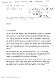 1-JUL-94 FR 14:56 vIlI BS5 MR Dr. 5.02 4 6 1 1 2 9 6 . 8 2 2 3 4 + . . . . . R N X A F B I I I V L A U n BMF 53117 Bon - FB 6405 Winkeler - - 34/94 11 14 1. Juli 1994 - ‚ RR z.A. Herfel - 10 91 - SF: FR L Ku &% 120 / 2.1 -d.Je ba air. b. 7-84 Betr,: Sozialpläne protokolls im Bergbaubereich vom 24. September infolge des sog. Festlegungs- 1990 / Vermerk I. Sachverhalt Auf der Grundlage des sog. Festlegungsprotokolls vom 24. September 1990, das u.a. von Staatssekretären der DDR-Regierung mitunter- zeichnet wurde, 1990 und der vertraglich der wurden der Sozialplan sog. zu erfüllen, die wurden worin eine September Sozialplanverpflichtungen auf vom 29. September 1990 tarif- Da die betroffenen Unternehmen nicht Initiative Rahmenvereinbarung mit der sen, Kali Schachtbau vom 28. abgeschlossen. Lage waren, Sozialplan aus der TRNRA auf in eigenen Mittel der Grundlage IGBE Änderungstarifverträge Teilstundung der Abfindungsansprüche einer abgeschlos- festgelegt , wurde, Der gestundete fällig, Teil der Abfindungsansprüche sobald rechtskräftig entschieden (30 ist, %) wird danach daß dem Unternehmen aus dem Festlegungsprotokoll vom 24. September 1990 Ansprüche gegen Die die Bundesrepublik Mitteldeutsche verträge waren bzw. hiervon Der Bund wurde Kali Deutschland AG hatte Sozialpläne 12 Klage ehemalige im Verfahren zustehen. wegen der gegen die Betriebe durch Finanzierung BRD erhoben. der Mitteldeutschen den BMWi (ZR) der Tarif- Betroffen Kali vertreten, AG.