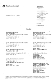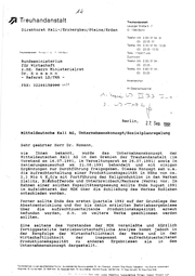 ZA Treuhandanstalt Treuhandanstait Leipziger Straße 5 - ? O9 - 1080 Baln Telefon (WI (0) Telefax {WI (0) Treuhendanstait Pastiarn 192 0.086 Bern Tolon 030/31 84-01 2323-01 030/3164-1320 2323-1320 1152417 ‚dd Durchwanl' Telefon (W) (0) Teiafax (W) (0: 030/31 54- 2323. 0307/3154. 2323- Aktenzachen Ihr Gesprachspartner. Telefax Bundesministerium der Finanzen Bundesministerium für wirtschaft 2.Hd. z.Hd. Dr. Herrn Ministerialdirigent Dr, Knauss - Unterabt. VIIIA FAX: 0228 2530 z.Hd. - = - Unterabt. FAX: 0228 2.Hd. Pr. VIIIB - - 2511 Herrn Referat Herrn - Ministerialrat Kriebel Referat Postfach Ministerialrat LD/THA 022861525098 443-1 z2.Hd. Bukbkinger Ministerlalrat Homann FAX: Herrn Ministerialdirigent Herrn 2 C6 14 02 - 60 5300 Bonn’ FAX: 0228615250 4434 Bierwirth - Referat VIIA4 - Martin-Luther-King-Straße FAX: 0228 2275 108. 2.Hd. Herrn Schaeper Treuarbeit | Postfach z.Hd, Herrn Ministerialrat Wenzel Referat IB5S5 Direktor AG 2722 4000 Düsseldorf FAX: 0211/3394260 Dr, - Graurheindorfer - Straße 108 Bundesministerium für Umwelt, Naturschutz und Reaktorsicherheit 5300 Bonn FAX: 0228 682 4420 z.Hd. Herrn Ministerialdirigent von Dr. Berg Postfach 5300 FAX: Touhendansiat. Ansal das Gflonichen Aecfis Muggaet ©i. Gunter muln Nadarare .enm. Non Ba Ort Word Kinz Voraitzerder dns Varwattungsratar. D° Jans Ouowala Varstama Prgr Dr. /unzanagr Koct Ur Hang Krämer Wilfrenv Ksuso an Karöu.h ner Alplienen 120629 Bonn 0228/3052527 Bieum, Prag len fern Brann\s Vironrardent Dr Klaus Schuent Neowmrmelem Di Klaca Patar Wild Massa Roanam.- Rn