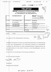 12/09.’29909 +49-36338-67103 88:18 BETRI EBSRAT DEUSA GMEH +49 36338 671083 S. a2 DER DEUS/ \ GMBH An den B undeskanzler der BRD Herrn Gerhard Schröder Bunde :skanzleramt 10178 Berlin Ihre Zeichen hrs Nachricht Unzsre Zeichen BR-Ka Bleicherode, aen 11.09.2000 Sehr 4Jeehrter Herr Bundeskanzler, bezug nehmend auf unser gemeinsames Gespräch am 30. August 2000 in Nordhausen und d em daraus resultierendenErgebnis, in dem Sie sich zu einem eindeutigen „Ja“ zur Stand ortsicherung der Kaliproduktion in Bleicherode sowie dem Erhalt der Arbeitsplätze der deusa GmbH bekannt haben muss ich Ihnen folgenden Zwischenstand mitteilen: 1. Bi s heute ist es nicht zu einem tragfähigen kurzfristigen Liquiditätskonzept für unser U nternehmen gekommen. Der Weiterbetrieb konnte nur anlaufen, weil durch die Geschäftsführung die Warenbestände an den Energieversorger verpfändet wurden und die Gasversorgung für vorerst 10 Tage gesichert wurde. Hierbei ist anzumerken, dass die Warenbestände ca. den 10-fachen Wert der zugesicherten | Energielieferungen ausmachen. Meines Wissens Bundeskanzleramt avisierte Te eu . Rundtischgespräch hat das der beteiligten durch das Banken bis heute nicht stattgefunden. Es | konnter”so auch keine Fortschritte bei der Valutierung der durch den Freistaat Thüringen ausgereichten Landesbürgschaft erzielt werden.