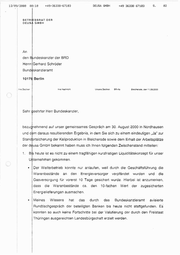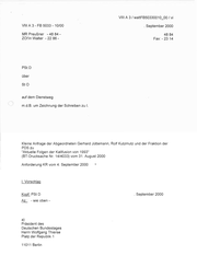 / VIII A3- FB 5033 - 10/00 MR Preußner VIII A 3 / waltFB50330010_00 vi . September 2000 -4884 - 48 84 ZOl'in Walter - 22 86 - Fax: - 23 14 PStD über stO auf dem Dienstweg m.d.B. um Zeichnung der Schreiben zu I. Kleine Anfrage der Abgeordneten Gerhard Jüttemann, Rolf Kutzmutz und der Fraktion der PDS zu "Aktuelle Folgen der Kalifusion von 1993" (BT-Drucksache Nr. 14/4033) vom 31. August 2000 Anforderung KR vom 4. September 2000 . l. Vorschlag Kopf: PSt D Az.: -wie oben - a) Präsident des Deutschen Bundestages Herrn Wolfgang Thierse Platz der Republik 1 11011 Berlin . September 2000