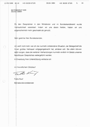 12/03/2008 84:18 +49-36338-67183 DEUISA GMBH +49 36338 67103 S. 84 BETRIEBSRAT DER DEUSA GMBH | Zu den Gesprächen in den Vertraulichkeit vereinbart. Ministerien und im Bundeskanzleramt Indem wir uns daran hielten, wurde haben wir uns ij augenscheinlich mehr geschadet als genutzt. | Sehr geehrter Herr Bundeskanzler, | ich weiß nicht mehr wie ich die nunmehr entstandene Situation, der Belegschaft die Ihhen großes Vertrauen entgegengebracht hat, erklären soll, Sie allein können dafür sorgen, dass die weiteren Verhandlungen nunmehr endlich im Geiste unseres | Nördhäuser Gespräches weitergeführt werden. In!Erwartung Ihrer Unterstützung verbleibe ich mit freundlichem Glückauf R E m. ! Falko Kauf Betriebsratsvorsitzender