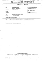 VOTNUVTEOON ac 0000. NIHNNSE INIER SWHRILAINLAFTM ‚+49 63 '/alw14S Ss.81 M... 18. 8.21IER SWARTLING FRANKFURT AM MAIN AN: Bundeskanzleramt TELEFAX: Herm Dr. Dahremüller Rundeskanzleramt (0 30) 4000 1818 ein. 06, Nov. 2600 KOPIE: u TELEFAX: VON: " Anlagen... "Rechtsanwalt Andreas Katzer DATUM: 6. November 2000 ANZAHL DER SEITEN (inkl. dieser): 4 Diese Nachricht ist vertraulich und nur für die oben genannten Personen bestimmt. Sollten Sie dieses Fax irtümlicherweise erhalten haben,bitten wir Sie, uns umgehendtelefonisch zu informieren, Bericht über den Verhandlungsstand MANNHEIMER SWARTLING Wildunger Straße 9, D-60487 Frankfurt am Main, Tel: +49 (0)69 974 01 20, Fax: +49 (0)69 741 01 43 hip: //www.msa.se E-mail: reception@msa.se STOCKHOLM GÖTEBORG MALMO HELSINGBORG NEW YORK FRANKFURT BERLIN MOSKAU. ST. PETERSBURG BRÜSSEI