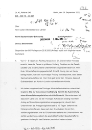 2SL2 GL 42, Referat 045 Berlin, den 29. September 2000 045 - 600 15 - Wi 001 7 f AG Kar 6 6 , 5 j u) A J 18 KANU U nn V. Über N, . . .. r Herrn Leiter Arbeitsstab neue Länder MV Als Herrn Staatsminister Schwanitz Deusa, Bleicherode 1 faa - zur Information - Yo. PR . EINGEGANGEN = 2. OKT. 2000 fh Tre InvL: Ab Z s < er Ynlye rd fern. Erf — — | . v v u T r u L b E ( 10 % r ue ne r de en lg fo ch si bt gi er e) Gegenüber der BK-Vorlage vom 20.9.2000 (Anlag Sachstand: 1. \ \ Von K + S haben den Rechtsunterzeichner (Dr. Dahremöller) Hinweise erreicht, dass die Deusa in größerem Umfang Darlehen an die Gesell- schafter und an verbundene Unternehmenausgereicht haben soll. Herr Krah, Wirtschaftsprüfungsgesellschaft Ernst & Young, den wir hierzu befragt haben, hat nach nochmaliger Prüfung Anhaltspunkte, dass dieser Sachverhalt zutreffend ist. Herr Krah gab ferner den Hinweis, dass auf Guthabenbasis ein Konto in London vorhanden sein könnte. 2: Wir haben umgehend dasThüringer Wirtschaftsministerium unterrichtet. Ergebnis: Bis zur lückenlosen Aufklärung kommt die Ausreichung eines Konsolidierungsdarlehen nicht in Betracht. Bemerkenswert ist, dass beim Land bzw. bei der Thüringer Aufbaubank bislang noch kein Antrag auf Konsolidierungsdarlehen eingegangen ist, obwohl dem Unternehmen die Antragsmöglichkeit seit rd .10 Tagen bekannt war.. Hintergrund dürfte sein, dass nach den Grundsätzen für ein Kon- solidierungsdarlehen zwar auf Sicherheiten seitens des Unternehmens ver- zichtet werden kann, jedoch die geschäftsführenden Gesellschafter in gewissen Umfang für das Darlehen persönlich haften müssen. WA - 6MOR-ka 66 [CO