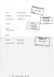 Firma: Bundeskanzleramt Empfänger: Dr. Frank-Walter Steinmeier Geschäftsstelis Telefax-Nummer: der Leitung 493040001818 24, Nov. 2000 ARrYy2 Abschrift: 8 Seiten: L_ 8 u | (inkl. Deckblatt) Betreff: Absender: Kali und Salz Bundeskaszlarg Posteinges;;, Au 4 27. Kay, 2009 Telefax-Nummer: 05613011666 A RN 2 7r O D ( 6 6 a k - 2 0 KM- 621 = F