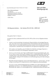 L2T7 Kali und Salz Beteiligungs AG, Postfach 102029, D-34111 Kassel - Kali und Salz Beteiligungs AG Herrn Ministertaldirigent Dr. Schnurer Bundesministerium für Umwelt, Naturschutz und Reaktorsicherheit Postfach 12 06 29 53048 Bonn l2. August 1998 Br/Sf Herr Dr. Brockhoff Z 0561-318-2710 Fax 0561-318-2716 B1208BUM.SAM EU-Deponierichtlinie - Ihr Zeichen WA ILS (S) - 45053-4/0 Sehr geehrter Herr Dr. Schnurer, wir dankenfür Ihren ausführlichen Brief vom 05.08.1998, auf den wr kurz folgendes erwidern dürfen: Soweit es um die beabsichtigte Anwendung der Deponierichtlinie auf untertägige Deponien geht, kann wohl in der Tat auf europäischer Ebene Entscheidendes nicht mehr unternommen werden. Man wird sich deshalb darauf konzentrieren müssen, bei der Umsetzung der EU-De- ponierichtlinie n nationales Recht auf sachgerechte und angemessene Regelungen zu achten. Wir würden es sehr begrüßen, wenn die Inhaber bzw. Betreiber untertägiger Deponien in Deutschland rechtzeitig n die Überlegungen eingeschaltet würden. DD Soweit es um den Versatz unter Tageals abfallrechtliche Verwertungsmaßnahme geht, wäre die von Ihnen erwähnte Änderung des Anhanges II B zur Abfallrahmenrichtlinie sicherlich ein wichtiger Schritt n die richtige Richtung. Ob das Erfolg haben wird, bleibt abzuwarten; die jüngste offizielle Anfrage der EU-Kommission an die Bundesregierung wirkt leider nicht gera- de beruhigend. Besonders besorgniserregend für unseren Unternehmensbereich st - wie Sie wissen - die beab- sichtigte Anwendung der EU-Deponierichtlinie auf die bergbaulichen Rückstandshalden. Es ist gut zu wissen, daß die Bundesregierung und offenbar auch andere Regierungen von Mit- gliedsstaaten der EU Art. 2 der Abfallrahmenrichtlinie so interpretieren, daß bergbauliche Rückstände oder Abfälle vom Anwendungsbereich der Abfallrahmenrichtlinie und damit auch ‚ul Friedrich-Ebert-Straße 160 D-34119 Kassel Bankverbindung: Kali-Bark GmbH Kassel Aufsichtsratsvorsitzender: Gerhard R. Wolf Vorstand: Ralf Beihke, Vors,., Telefon: (0561) 301-0 (BLZ 520 200 00) Konto 77001 Axel Hollstein, Volker Schäfer Telefax: (0561) 301-1702 Telex: 99632-0 wuk d Sitz der Gesellschaft: Kassel Registergericht: Kassel (HRB 2669)