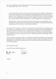 Seite 3 des Schreibens an die Bundesministerin für Umwelt, Naturschutz und Reaktorsicherheit Frau Dr. Angela Merkel, Bonn vom 31. März 1998 Aus vielerlei Gründen verbietet es sich sowohl technisch als auch wirtschaftlich, die Deponiericht- linie auf diesen besonderen Fall der berebaulichen Rückstandshalden anzuwenden. Dies st aber gerade mit dem vorliegenden Entwurf der Deponierichtlinie beabsichtigt. Zur näheren Erläuterung dürfen wir auf das beigefüste Positionspapier (ohne Anlagen) verweisen, das wir Herrn Dr. Krä- mer, Leiter des Referats Abtallwrtschattspolitik n der Generaldirektion XI, zugeleitet haben. Möglicherweise wird die Generaldirektion XI dieses Positionspapier zum Anlaß nehmen, noch notwendige Sonderregelungen in die Deponierichtlinie einzuarbeiten, entsprechende politische Un- terstützung durch Sie wäre Jedochin jedem Falle sehr hilfreich. Sehr geehrte Frau Ministerin, wir hoffen sehr, schon mit diesen wenigen Hinweisen verdeutlicht zu ha- ben, daß sowohl aus abfallpolitischer bzw. -wirtschaftlicher Hinsicht als auch im wohlverstandenen In- teresse der betroffenen Unternehmen bei der Deponierichtlinie erheblicher Korrekturbedarf besteht. Wir wären dankbar, wenn Sie dies n dem vorstehend skizzierten Sinne bei den weiteren Erörterungen auf europäischer Ebene und vor allem bei den noch zu treffenden politischen Entscheidungen berück- sichtigen würden. [hr Einverständnis vorausgesetzt, haben wir Abschriften dieses Briefes unmittelbar an die Herren Mini- sterpräsidenten der Bundesländer Hessen, Niedersachsen, Sachsen-Anhalt und Thüringen sowie Herrn MdB Kampeter, dem Bundeswirtschaftsministerium und in Ihrem Hause den Herren Dr. Ruchay und Dr. Schnurer zugeleitet. Mit freundlichen Grüßen KALI UND SALZ BETEILIGUNGS AG ethke Anlagen *+z Schäfe