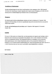 11.MAR.1953 19:28 K+5 KOMMUNIKATION nn 5.4 Investitionen in Sachaniagen Die Kali und Salz-Gruppe hat nach hohenInvestitionsspitzen in den vergangenen Jahren 1998 insgesamt 157,0 Mio, DM in Sachanlagen investiert. Gegenüber dem Vorjahr ist dies ein Rückgang um 37,3 Mio. DM. Der Schwerpunkt der Investitionstätigkeit lag im Bereich der Kali- und Verbundprodukte. Mitarbeiter Die Mitarbeiterzahl der Kali und Salz-Gruppe veränderte sich kaum und betrug am 31. Dezembar 1998 insgesamt 8.472 Beschäftigte. Die Zahl der Auszubildenden stieg auf 434; dies sind 49 mehr als zum gleichen Zeitpunkt des Vorjahres. Die Kali und Salz Beteiligungs AG beschäftigte zum 31. Dezember 1998 insgesamt 271 Mitarbeiter (Vorjahr: 280). | Ausblick Für das Jahr 1989 erwarten wir im Bereich Kall- und Verbunaprodukte eine insgesamt gute Nachfrage, wobeiin Europadie weitere Entwicklung der Agrarpolitik der Europäischen Unlon und das schwebende Anti-Dumping- Verfahren Unwägbarkeiten darstellen. Das Salzgeschäft profitierte zu Jahresbeginn von den winterlichen Witterungsbedingungen; bei den übrigen Salzprodukten gehen wir trotz europaweitem Wettbewerbs- und Preisdruck von einer ebenfalls stabilen Absatzentwicklung aus. Unsere Entsorgungsleistungen stehen nach wie vor in harter Konkurrenz; doch auchhier sind wir zuversichtlich, unsere Marktpositionen zu behaupten. Der Vorstand Kassel, im März 1999