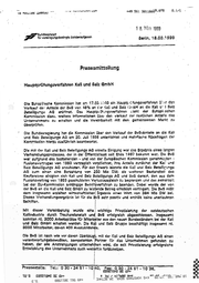 ug Nalilas ueSsu new„eNIt MM san = um, +49 551 za1schr.7a IT . 1 Sir 1 8. Marz 1999 Bundasansttt - fürvereinigungsbedingteSenderautgenen M u i Barlin, 18.03.1999 Pressamittsilung Haupterüfungsverfahren Kali und Salz GmbH n de er Gi n hre rfa ve gs un ruf tz up Ha ein 39 .19 .08 17 am r ha ion iss mm Ko Die Europäische z Sal 3 u‘ i Kal die an H (mb Sala und Kali Car an 39% von 8vS der eile Verkauf der Ant n che &.s rop Eu r de nt sie n hre rfa sve ng ffu im up Ha s Da Beteillgungs AG eröffnet, s de eile Ant n liche rest der auf verk den r Übe n ione mat Irfor ters wai u, daz n issio mm "Ko zu rkt Ma an ssm ein gem dem mit eit ark einb Ver die und n alte erh zu ers ehm ' Untern überprüfen. ’” Die Bundasregierung har dia Kommisslon über den Verkauf der BvS»Antsile an die Kal und Salz Betellgungs AG am. 20. Jull 1998 unterrionter und mehrfache Rückfragen. der Köammissien hierzu. ausführlich beantwortet Die mit der Kali und Salz Beteiligungs AG erzielte Einigung war das Ergebnis eines langen Varhandiungsprozesses, der in dar Öffentlichkeit selt Ende 1397 bekannt war, Die. BvS war aufgrund des bestehenden » und von dar Eurapälschen Kommission genshmitten - Fusionsvertragas ven 1993 verraglieh verpflichtet, ihre Anteile zundchst der Kai’ und Salz Beteillgungs AG anzubieten, Für den Erwerb leistete die Kall und Salz Betellicungs AG zum einen eine Barzahlung von.250 Mio DM; als weiteren Bastandteil des Kaufpreises alnigten sieh Kali und Salz Berelligungs AG und BvS darauf, den aus dem Fusionsvartrag von 1993 geschuldeten Veriustausgleich zu begrenzen und das seinerzeit b9i der EU-Kommission antänrgige Beihilfsverfahren zu beenden, Dabei wurde der von der BwS an die Kall und Salz GmbH zu leistenda Batrag erheblish verringert. Die BvS mißt dem ‚insgesamt arzielten wirtschaftliehen! Ergebnis sinen Wert von 384 Mio DM bei. Dieses Verhandlungsergeanis Ist für die BvS sehr positiv und enthält keine unerlaubten ‚Seihllfen, Mit dieser Vereinbarung wurde eina.| wichties Frivatiisierung der ostdeutschen Kalündustrie dureh Treuhandanstalt und! BvS erfolgreich abgeschlossen. Insgessmt konnten rd. 3000 Arbeitsplätze für Mitarbeiter aus dan neuen Bundasländern bei der Kali und Salz GmbH arhalten werden. Die Kali und’ Salz: Gruppe beschäftigt Insgesamt rd. sooo Mitarbeiter, davon 400 Selen e. Die BvS Isz nach wie vor davon überzeu ‚mit der Kali und Salz Beteiligungs AG einen - verantworungsbewußten, kompetenten Partner für das Unternehmen gefunden zu . haben. der alle Anstrengungen unternehfnen wird, die seit Privatisierung erfolgreiche Entwicklung des Unternehmens auch wsiterhin a | q Pressestelle: - 385 Tel. 0 30 «24 51 - 10 40, Dex 030 - 24 51 - aeg EOIITWE BE Er+ er BasTge 195 Ebr+ 10 36, 7 8 U u . 6 6 T e r e M S A O S S L Y s N Ä S NR&aN