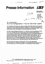 —_—————H mio NUMWINLKHA | LON j +43 561 2u11565N. 971 S,1/1 Presse-Information Kali und Salz Beteiligungs AG 8. Marz 1999 2 1. - 18.03.1999 . AR-Gö/Pi Ulrich Göbel (0561) 301-1722 4 PT EU«rüfungsverfahren: . Se K+S hat marktgerschten Preis für BvS-Anteil Jezanhit Die Europäische Kommission hatwegen gas Verkaufs der BvS-Anteile von 49 Prozant an der K+S GmbH ein Hauptprüfungsverfahren aröifnet. Darin hat sie die Bundesregierung aufgefordert, weitere Informationen über die Transaktion zur Verfügung zu stellen, um die Vereinbarkait mit den einschlägigen EU-Richtlinien überprüfen zu können. Die Kali und Salz Beteiligungs AG hatte im ui 1998 die ven der BvS gehaltenen Artelle an der Kali und Salz GmbH nach langen und intensiven Verhandlungen erworben. Für den Erwerbleistete die Kali und Salz Betsiligungs AG als Tell des Gesamtkaufpreises eine Barzahlung von 250 Millionen DM, Außerdem wurde der von der BvS ar: K>S zu leistende Verlustausglelch, den die EU-Kommission bereits 1953 genehmigt "satte, um 65 Millionen DM verringert. Schließlich wurde ein bel der EU-Kommission anhängiges Beihilfeverfahren zum Ausgleich aufgelaufener Verluste beendet, mit dem weltere Zahlungen der BvS von rund 70 Millionen DM verbunden gewesen wären, Diese Elemente ergeben einen Gesamtwert der Anteilsübertragung ven Gbar 380 Millionen DM. . Ä K+S hält dies für einen absolut marktgarechten Prals und sieht deshalb dem Prüfungsveriahren mit Gelassenheit entgegen. Sie wird gegenüber der EU-Kommission, der Bundesregierung und der BvS kooperativ zur Aufklärung der Fragen beiragen, Presse- und Öffentlichkeitsarbeit : Postfach 102029 - D-341 11 Kassel Tlafon: (0581) 301-1722 - Telefax: (05 61) 301-1888 Er + } | | L S L B a B 1 ‘ } 1L>= 5 6 tz « JaoW ST