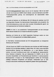 22.DEZ.1999 18:17 K+S GMBH VM/P 0561-3013222 K+s BS61-3013332436 5.35 Seite - 2 - zur Presse-Information „K+S erwirbt neues Geschäftsfeld‘ vom 22.12.1999 Die K+S Aktiengesellschaft, Kassel, hat sich am 20. Dezember 1999 mit der BASF AG über den Erwerb der COMPO GmbH, Münster, sowie die Übernahme des BASF- Felddüngergeschäftes geeinigt. Die Aufsichtsgremien der Gesellschaften haben zugestimmt. Es wurde ein Kaufpreis von 420 Millionen DM (215 Millionen €) vereinbart, den K+S aus Eigenmitteln finanziert. Die übernommenen Gesellschaften sind schuldenfrei. Die Unternehmensbewertung wurde durch einen neutralen Wirtschaftsprüfer geprüft, der die Angemessenheit der Konditionen bestätigt hat, COMPO mit ihren in- und ausländischen Tochtergesellschaften und dem bisherigen BASF-Standort Krefeld wird von Handorf bei Münster aus geführt. Marketing und Vertrieb der von BASF hergestellten Felddünger werden von einer neuen K+S-Tochtergesellschaft, der fertiva GmbH, gesteuert, Dr. Ralf Bethke, Vorstandsvorsitzender der K+S Aktiengesellschaft, zur strategischen Bedeutung der Akquisition: „Mit dem Erwerb der COMPO und der Übernahmedes Vertriebs der BASF-Felddünger erweitert K+S ihre Aktivitäten geradezu in idealer Weise. Wir nutzen unsere besondere landwirtschaftliche Expertise und Marktkenntnis, um in neue Bereiche hineinzu- wachsen, die sowohl kurzfristig als auch mittel- und langfristig ein überdurchschnitt- liches Wachstum ermöglichen. Dies gilt insbesondere für COMPO, dia mit ihren innovativen Spezialitäten und Produktentwicklungen Marktführer in wachstumsstarken Marktsegmenten in Europa ist, Das Felddüngersegment eröffnet der K+S-Gruppe vielfältige interessante Perspektiven und Synergien, insbesondere auch vor dem Hintergrund des bereits mittelfristig stark steigeriden globalen Nahrungsmittelbedarfs.