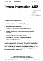 10.AUG.2088 8:48 K+5 KOMMUNIKATION i NR.487 SrEHS Seite - 2 - zur Presse-Information „At+&-uruppe weiter au Erfolgskurs" vom EN Operatives Ergebnis (EBIT)auf 80,1 Mio. € deutlichgesteigert Das Ergebnis der Betriebstätigkeit (EBIT) der KrS-GruppeIst im 1. Halbjahr dieses Jahres um 43 % auf 80,1 Mio. € gestiegen. Die COMFPO-Aktivitätern haben wesentlich zu diesem Anstieg beigetragen. Das Exportgeschäft war durch vorteilhafte Wechselkurse begünstigt. Schließlich sind Im EBIT des 1. Halbjahres 2000 auch weniger Sonderbelastungen enthalten als im Vorjahreszeitraum. Mit Ausnahme des wiiterungsbedingt schwächeren Salzgeschäfts wurden in allen Geschäftsbereichen die Ergebniszlele erreicht. Das Ergebnis vor Ertragsteuern der K+S-Gruppe erhöhte sich im 1. Halbjahr dieses Jahres gegenüber dem Vorjahr um 38 % auf 81,9 Mlo. €. Das Ergebnis pro Aktie (auf Basis des DVFA-Ergebnisses) übertraf mit 0,98 € den Vorjahreswert um 29 Cent bzw. 42 % (bezogen auf 45,0 Mio. Aktien nach Einziehung von 5,0 Mio, Aktien im Mai dieses Jahres). Am 26. Juni 2000 hat die K+S Aktiengesellschaft Ihr neues Aktlenrübkkaufprogramm gestartet. Dabei können maximal 10 % des derzeitigen Grundkapitals von 115,2 Mio. € über die Börse zurück- gekauft werden. Kall- und Magnesiumprodukte mit günstigem Marktumfeld Von Januar bis Juni 2000 erreichte der Umsatz im Geschäftsbereich Kali- und Magnesiumprodukte mit 500,4 Mio. € nahezu das hohe Vorlahresniveau (- 1 %). Deutliche Steigerungen bei unseren Industriekalilieferungen — vor allem durch die Übernahme von Positionen in Frankreich - haben Umsatzrückgänge bei Kaliumchlorld und Düngemittel-Spezialitäten weitgehend ausgeglichen. Der \WVeltkalimarkt hat sich im Verlauf des 1. Halbjahres 2000 besser entwickelt als im Vorjahr, Nach derzeit vorlisgenden Schätzungen wird der Weltkallabsatz mit 13,5 Mio. t K,O das Niveau des Vorjahres um 0,8 Mio. t KO bzw. 6 % übertreffen, Dies ist insbesondere auf die erhöhte Nachfrage in China und Brasilien zurückzuführen. Zusätzlich ist in Nordamerika nach dem drastischen Rückgang des Düngemittelabsatzes im vergangenenJahr eine deutliche Erholung eingetreten. COMPO.Geschäftsentwicklung sehr erfreulich In unserem neuen Segment COMFPOhat sich die positive Geschäftsentwicklung des ersten Quartals fortgesetzt, Der Umsatz erreichte mit 190,8 Mio, € eine erfreuliche Größenordnung. In allen Bereichen wurden Zuwächss erzielt, die über den Erwartungen lagen. Im Hobbygeschäft kamen die positiven Impulse aus der erfreulichen Nachfrage während der Hauptsaison von Produkten für Helm und Garten. Im Profibereich wurden die neu eingeführten innovativen ENTEC-Dünger von den Kunden sehr gut angenommen. D.\eigene Dalalen\2000\Pr6Läa-InAPIDBID-t zb.dao