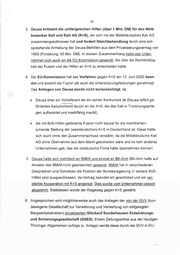 -2- 3. Deusa kritisiert die umfangreichen Hilfen (über 1 Mrd. DM) für den Wett- bewerber Kali und Salz AG (K+S), der sich mit der Mitteldeutschen Kali AG zusammengeschlossen hat und fordert Gleichbehandlung durch eine ent- sprechende Anhebung der Deusa-Beihilfen aus dem Privatisierungsvertrag von 1993 (Forderung: 50 Mio. DM). In diesem Zusammenhang hatte das Unter- nehmen sich auch an die EU-Kommission gewandt, die über die Rechtmäßig- keit der Fusion und der Hilfen an K+S zu entscheiden hatte. 4. Die EU-Kommission hat das Verfahren gegen K+S am 13. Juni 2000 been- det und sowohl die Fusion als auch die Unterstützungsleistungen genehmigt. Das Anliegen von Deusa wurde nicht berücksichtigt, da e Deusa eher ein Vorlieferant als ein echter Konkurrent ist (Deusa liefert ge- fördertes Kaliumchlorid feucht an die K+S, die das Kali in Trocknungsanla- gen aufbereitet und marktfähig macht), e die mit BvS-Hilfen geförderte Fusion nicht kausal für die marktbeherr- schende Stellung der (westdeutschen) K+S in Deutschland ist. Diese hätte sich auch ohne den Zusammenschluss verstärkt, da die Mitteldeutsche Kal AG ohne Übernahme aus dem Markt geschieden wäre und es kein anderes Unternehmen gab, das die ostdeutsche Firma hätte übernehmen können. 5. Deusa hatte sich mehrfach an BMWi und einmal an BK-Amt (BK-Amt hatte auf Anraten des BMWi nicht geantwortet) gewandt. BMWi hat in verschiedenen Gesprächen und Schreiben die Position der Bundesregierung (= weitere BVS- Hilfen sind ausgeschlossen, da Vertrag beendet ist) geschildert und ein ver- stärkte Kooperation mit K+S angeregt. Dies wurde vom Unternehmen jedoch abgelehnt. Stattdessen wurde der Klageweg gegen K+S gewählt. 6. Angesprochen wird möglicherweise auch das Anliegen der von der GVV (bun- deseigene Gesellschaft zur Verwahrung und Verwertung von stillgelegten Bergwerksbetrieben) privatisierten Glückauf Sonderhausen Entwicklungs- und Sicherungsgesellschaft (GSES). Einem Zeitungsartikel aus der heutigen Thüringer Allgemeinen zufolge (s. Anlage) werde diese durch die GVV in EU-
