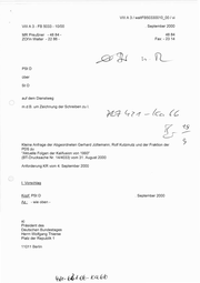 VIII A 3 / waltFB50330010_00 / vi VII A3- FB 5033 - 10/00 . September 2000 MR Preußner - 48 84 - ZOl'in Walter - 22 86 - 48 84 Fax: - 23 14 über SstO auf dem Dienstweg m.d.B. um Zeichnung der Schreiben zu |. IF Gen -— lee (EG ni __— Kleine Anfrage der Abgeordneten Gerhard Jüttemann, Rolf Kutzmutz und der Fraktion der PDS zu "Aktuelle Folgen der Kalifusion von 1993" (BT-Drucksache Nr. 14/4033) vom 31. August 2000 Anforderung KR vom 4. September 2000 l. Vorschlag Kopf: PStD Az.: September 2000 - wie oben - a) Präsident des Deutschen Bundestages Herrn Wolfgang Thierse Platz der Republik 1 11011 Berlin n- 664 06- Ca 66 7