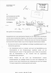 Geschäftsstelle BETRIEBSRAT DER der Leitung DEUSA GMBH 15, Sep. 2000 An den Bundeskanzler der BRD Herrn Gerhard Schröder Bundeskanzleramt 10178Berlin . = sm go Ihre Nackcht Inre Zeichen v ) N lm ,)® AL 4 w u Ne Fa { ne SÄhH Urn e e Bleichero@e-Gen 11.082000 in e k Unsere Zeichen ER-Kay m A Ar : k 8 Ir N d 2 t R > u Sehr geehrter Herr Bundeskanzler, ww Ss /38 1 N ee l [ee bezugnehmend auf unser gemeinsames Gespräch am 30. Äugust 2000 in Nordhausen und dem daraus resultierenden Ergebnis, in dem Sie sich zu einem eindeutigen „Ja“ zur Standortsicherung der Kaliproduktion in Bleicherode sowie dem Erhalt der Arbeitsplätze der deusa GmbH bekannt haben muss ich Ihnen folgenden Zwischenstand mitteilen: 1. Bis heute ist es nicht zu einem tragfähigen kurzfristigen Liquiditätskonzept für unser Unternehmen gekommen. Der Weiterbetrieb konnte nur anlaufen, weil durch die Geschäftsführung die Warenbestände an den Energieversorger verpfändet wurden und die Gasversorgung für vorerst 10 Tage gesichert wurde. Hierbei ist anzumerken, dass die Warenbestände ca. den 10-fachen Wert der zugesicherten Energielieferungen ausmachen. Meines Wissens hat das Rundtischgespräch der beteiligten durch das Bundeskanzleramt avisierte Banken bis heute nicht stattgefunden. Es konnten so auch keine Fortschritte bei der Valutierung der durch den Freistaat Thüringen ausgereichten Landesbürgschaft erzielt werden. UA- br1032 - ka 66 [2