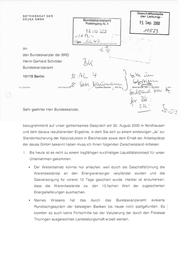 Geschäftsstelle , BETRIEBSRAT DER eu DEUSA GMBH der Leitung-- Bundeskanzleramt I PosteingangAL4 | 15, Sep. 2000 a1. 00 u )& AL 0523 © 7 BE Fi Yan: BL Fan... den Bundeskanzler der BRD | Herrn Gerhard Schröder Er ae Bundeskanzleramt ) art vun x KL 4 n n u a n m u w e b Bi Mn 10178Berlin r= Zsicren inre Nachricfl \Unsere Zeichen p BR-Ka f „euer e. den 11.09.2000 MM Sehr geehrter Herr Bundeskanzler, bezugnehmend auf unser gemeinsames Gespräch am 30. August 2000 in Nordhausen und dem daraus resultierenden Ergebnis, in dem Sie sich zu einem eindeutigen „Ja“ zur Standortsicherung der Kaliproduktion in Bleicherode sowie dem Erhalt der Arbeitsplätze der deusa GmbH bekannt haben muss ich Ihnen folgenden Zwischenstand mitteilen: 1. Bis heute ist es nicht zu einem tragfähigen kurzfristigen Liquiditätskonzept für unser Unternehmen gekommen. =» Der Weiterbetrieb Warenbestände konnte nur anlaufen, weil durch die Geschäftsführung die an den Energieversorger verpfändet wurden und die Gasversorgung für vorerst 10 Tage gesichert wurde. Hierbei ist anzumerken, dass die Warenbestände ca. den 10-fachen Wert der zugesicherten Energielieferungen ausmachen. =» Meines Wissens hat das durch das Bundeskanzleramt avisierte Rundtischgespräch der beteiligten Banken bis heute nicht stattgefunden. Es konnten so auch keine Fortschritte bei der Valutierung der durch den Freistaat Thüringen ausgereichten Landesbürgschaft erzielt werden.
