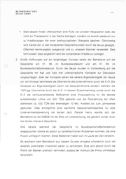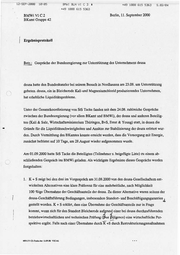 12-SEP-2B88 12:25 BMWI BLNVICSI +49 1859 615 A +49 1888 615 5363 S.82/04 5363 BMWi VIC2 BKamt Gruppe 42 Berlin, 11. September 2000 # Ergebnisprotokoll Betr.: Gespräche der Bundesregierung zur Unterstützung des Unternehmens deusa deusa hatte den Bundeskanzler bei seinemBesuch in Nordhausen am 23.08. um Unterstützung gebeten. deusa,ein in Bleicherode Kali-und Magnesiumchlorid produzierendes Unternehmen, hat erhebliche Liquiditätsprobleme. Unter der Gesamtkoordinierung von StS Tacke fandenseit dem 24.08. zahlreiche Gespräche zwischen der Bundesregierung (vor allem BKamt und BMWi), der deusa und anderen Beteilig- ten (Kali & Salz, Wirtschaftsministerium Thüringen, BvS, Emst & Young)statt, in denen die Gründe für die Liquiditätsschwierigkeiten und Ansätze zurStabilisierung der deusa erörtert wur- den. Durch Vermittlung des BKamtes konnte erreicht werden, dass die Versorgung mit Energie, zunächstbefristet auf 10 Tage, am 28.August wieder aufgenommen wurde. Am 01.09.2000 hatte StS Tackedie Beteiligten (Teilnehmers. beigefügte Liste) zu einem ab- schließenden Gespräch ins BMWi geladen. Als wichtigste Ergebnisse dieses Gesprächs werden festgehalten: 1. K+S zeigt bei den drei im Vorgespräch am 31.08.2000 von den deusa-Gesellschaftern ent- wickelten Alternativen eine klare Präferenz für eine mehrheitliche, nach Möglichkeit 100 %ige Übernahme der Geschäftsanteile der deusa. Zu dieser Alternative warenseitens der Man deusa-Geschäftsführung Bedingungen,insbesondere Standort- und BeschäftigungsgarantienJ gestellt worden. K + S erklärt, dass eine Übernahme der Geschäftsanteile nur in Frage kommt, wenn sich für den Standort Bleicherode aufgnundeiner bei deusa durchzuführenden betriebswirtschaftlichen und technischen Prüfung (Pue Diligence) eine wirtschaftliche Per- spektive ergibt. Falls nach einer Übernahme durchK+Sdurch Restrukturierungsmaßnahmen 00911V-C3-Fuchs.doc 12.09.00 VICMi