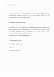 -BETRIEBSRAT DER DEUSA GMBH Zu den Gesprächen Vertraulichkeit in den vereinbart. Ministerien Indem wir uns und im daran Bundeskanzleramt hielten, haben wurde wir uns augenscheinlich mehr geschadet als genutzt. Sehr geehrter Herr Bundeskanzler, ich weiß nicht mehr wie ich die nunmehr entstandene Situation, der Belegschaft die Ihnen großes Vertrauen entgegengebracht hat, erklären soll. Sie allein können dafür sorgen, dass die weiteren Verhandlungen nunmehr endlich im Geiste unseres Nordhäuser Gespräches weitergeführt werden. In Erwartung Ihrer Unterstützung verbleibe ich mit freundlichem Glückauf —_ Es AT Falko Kauf Betriebsratsvorsitzender