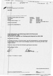11/89’2aa0 13:38 +49-36338-671 83 aB-SEP-2BE0 12:47 +49 Bus Fon27 er1a3 5 4 DEUSA GMBH BLE ICHER, S. 43 38 2086431399 5.01 eu Bundesanstalt 77 n be ga uf ra de on S te g in d e sb g n u ig in für vere c Aadl 04 100 aN8 VAD h tlac Pas n aba nufg der Son gta edin gsd unm inlg verv für alt ana dus Bur Deutsche Verkehrs-Bank AG Frankfurt Herrn Heinz Bearbelterin: Unser Zeichen: Neumann Nha/KKa Direktar Telefon: 030/20643-1342 Friedrich-Ebert-Anlage 2 - 14 Telsfax; 030/20264-1399 Emall: hannelore.neumann@bvs-fub.de Datum: 08.09.2000 60325] Frankfurt/Main - vorab [per Fax: 089-97504119 Solbergwerke und Aufbereliungs GmbH, 99752 Bleicherode Unsere System-Nr. 71988 . hler:| Zinsen aus Festgeldern zur Hinterlegung dar Bürgschaft vom 08.02.1995 Sehn geehrter Herr Heinz, wir möchten Sie davon in Kenntnis setzen, dass die Bundesanstalt für verelnigungsbedingte Sonderaufgaben auf die Auskehr des Zinsertrages verzichtet. Der Zinsertrag soll dem Unter- nehmen zustehen. Wir werden deusa mit Kopie des Schreibens gleichlautend informieren. Mit fre dliegen Grüßen n % R EC er Ne ce:ldeusa, Hr. Krumbein, Hr. Lenisch J:fubz4\neum\2009\briefe\heinz08.09.doc Blnaeaansinit für verainigungsbodinnte Sunderdutganman Vorsirzender use Verwaltungarates: Dr. Manlren Schülse - Vorstand: Gynter HImsted F Präsident Adlanse; Markgrafenztraß« 85, 10177 Baelin Tel. 0 30/206 «3-0 GESAMT SFITEN 04 83