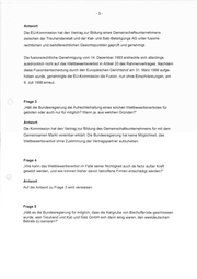 Kleine Anfrage der Abgeordneten Gerhard Jüttemann, Rolf Kutzmutz und der Fraktion der PDS zu "Aktuelle Folgen der Kalifusion von 1993" (BT-Drucksache Nr. 14/4033) vom 31. August 2000 1 Mehrabdruck Namens der Bundesregierung beantworte ich die 0.9. Kleine Anfrage zu den aktuellen Folgen der Kalifusion 1993 wie folgt: Frage 1 „Ist es zutreffend, dass in dem 1993 von der Treuhand initiierten und abgeschlossenen Fusionsvertrag zwischen der Mitteldeutschen Kali AG Sondershausen und der Kali und Salz AG Kassel oder in nachfolgenden Verträgen geregelt wird, dass bis zum 31.12.2003 die Produktions- und Vertriebsinteressen der Kali und Salz GmbH nicht durch andere Firmen im Wettbewerb beeinträchtigt werden dürfen? Wenn ja, welche Regelungen sind das?“ Antwort Der Entscheidung der Europäischen Kommission aus 1993 (vgl. Amtsblatt der Europäischen Gemeinschaften Nr. L 186/38 ff. vom 21. Juli 1994) war bereits zu entnehmen, dass sich die Vertragsparteien Treuhandanstalt und Kali und Salz AG, Kassel verpflichteten, gemäß Artikel 20 Abs. 1 des Rahmenvertrages vom 13.05.1993, für die Dauer von 10 Jahren weder unmittelbar noch mittelbar in Wettbewerb zu dem Gemeinschaftsunternehmen Kali und Salz GmbH, Kassel, zu treten. Nach Artikel 20 Abs. 2 verpflichteten sich die Vertragsparteien, bei der Veräußerung von Anlagen, Einrichtungen oder Beteiligungsrechten dieses Wettbewerbsverbot auf den Erwerber zu übertragen, sofern die erworbenen Aktivitäten geeignet sind, zu Wettbewerbszwecken gegenüber dem Gemeinschaftsunternehmen genutzt zu werden. Frage 2 „Welche Haltung hat nach Kenntnis der Bundesregierung die EU-Kommission zu diesem Vertrag im Allgemeinen und zu einem solchen Wettbewerbsverbot im besonderen einge- nommen?“