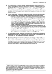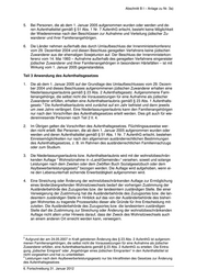 Abschnitt B I – Anlage zu Nr. 3a) 5. Die Zustimmung ist zu erteilen, wenn der Lebensunterhalt am neuen Wohnort voraus- sichtlich dauerhaft ohne die Inanspruchnahme von Leistungen nach dem Zweiten oder dem Zwölften Buch Sozialgesetzbuch gesichert ist (vgl. § 2 Abs. 3 Aufenthaltsgesetz). Dabei gilt die am Zuzugsort übliche Berechnungsweise des für die Sicherung des Le- bensunterhaltes erforderlichen Einkommens. Die Zustimmung ist auch zu erteilen, wenn das für die Sicherung des Lebensunterhaltes erforderliche Einkommen um bis zu 10 % unterschritten wird. 6. Darüber hinaus ist die Zustimmung – unabhängig von der Sicherung des Lebensunter- halts – zu erteilen, wenn mindestens eine der folgenden Voraussetzungen vorliegt: ● Der Umzug dient der Herstellung der familiären Lebensgemeinschaft zwischen dem jüdischen Zuwanderer und seinem Ehegatten sowie zwischen Eltern und ihren minderjährigen ledigen Kindern, sofern die Familienangehörigen über eine 5 Aufenthaltserlaubnis gemäß § 23 Abs. 1 Aufenthaltsgesetz verfügen. Die Zu- stimmung darf nicht erteilt werden, wenn der zuziehende Ehegatte oder Eltern- teil im Falle des Umzugs seine Erwerbstätigkeit aufgeben müsste, es sei denn, der Lebensunterhalt wird auch für den zuziehenden Ehegatten durch den Ehe- gatten, zu dem zugezogen wird, gesichert. ● Der Umzug dient der Sicherstellung der benötigten Pflege von Betroffenen, die wegen ihres Alters oder wegen ihrer Krankheit oder Behinderung pflegebedürftig sind, durch die Verwandten am Zuzugsort, oder weil nur dort eine angemessene medizinische Behandlung möglich ist. ● Die Betroffenen sind selbst unabdingbar für die Pflege eines nahen Angehöri- gen, der über einen Aufenthaltstitel verfügt und im Zuzugsort lebt. 7. Die Ausländerbehörde des bisherigen Wohnortes darf die wohnsitzbeschränkende Auf- lage erst dann streichen oder ändern, wenn die Zustimmung der Ausländerbehörde des Zuzugsortes bzw. der landesintern zuständigen Stelle vorliegt. 8. Wurde eine wohnsitzbeschränkende Auflage ohne die vorherige Zustimmung der Aus- länderbehörde des Zuzugsortes bzw. der landesintern zuständigen Stelle gestrichen o- der geändert und tritt innerhalb von sechs Monaten am Zuzugsort Bedürftigkeit nach Leistungen nach dem Zweiten oder dem Zwölften Buch Sozialgesetzbuch ein, so ist die Wohnsitznahme erneut durch Auflage auf das Land des vorherigen Wohnortes zu be- schränken, es sei denn, es lägen die unter 6 genannten Gründe vor." 5 Aufgrund der am 24.05.2007 in Kraft getretenen Änderung des § 23 Abs. 2 AufenthG ist aufgenom- menen Familienangehörigen, die selbst nicht die Voraussetzungen für eine Aufnahme als jüdischer Zuwanderer erfüllen, eine Aufenthaltserlaubnis gemäß § 23 Abs. 2 AufenthG zu erteilen. Die Eintra- gung „jüdischer Emigrant“ oder „Angehöriger eines jüdischen Emigranten“ in den Aufenthaltstitel ist nicht vorgesehen und hat zu unterbleiben. 6. Fortschreibung 31. Januar 2012