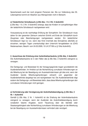 Spracherwerb auch bei noch jüngeren Personen dar. Bis zur Vollendung des 55. Lebensjahres kommt ein Absehen aus Altersgründen nicht in Betracht. e) Tatsächlicher Schulbesuch, § 25b Abs. 1 S. 2 Nr. 5 AufenthG § 25b Abs. 1 S. 2 Nr. 5 AufenthG verlangt, dass bei Kindern im schulpflichtigen Alter der tatsächliche Schulbesuch nachgewiesen wird. Voraussetzung ist die nachhaltige Erfüllung der Schulpflicht. Der Schulbesuch muss daher für den gesamten Zeitraum zwischen Eintritt und Ende der Schulpflicht durch Zeugnisse oder Bescheinigungen nachgewiesen werden. Ein tatsächlicher Schulbesuch liegt nur vor, wenn das Kind innerhalb des Schuljahres allenfalls an einzelnen, wenigen Tagen unentschuldigt dem Unterricht ferngeblieben ist (OVG Niedersachsen, Beschl. vom 24.03.2009, 10 LA 377/08 zu § 104a AufenthG). 2. Ausschluss der Erteilung einer Aufenthaltserlaubnis, § 25b Abs. 2 AufenthG Die Aufenthaltserlaubnis ist in den Fällen des § 25b Abs. 2 AufenthG zwingend zu versagen. Die Darlegungs- und Beweislast für die Versagungsgründe tragen grundsätzlich die Ausländerbehörden. Im Hinblick auf die Nichterfüllung zumutbarer Anforderungen an die Mitwirkung bei der Beseitigung von Ausreisehindernissen gilt dies erst, wenn der Ausländer bereits Mitwirkungshandlungen erbracht und gegenüber der Ausländerbehörde dargelegt hat und nachgewiesen hat. Die Ausländerbehörde trägt sodann die Darlegungs- und Beweislast dafür, dass diese Mitwirkungshandlungen den zumutbaren Anforderungen nicht genügen. a) Verhinderung oder Verzögerung der Aufenthaltsbeendigung, § 25b Abs. 2 Nr. 1 AufenthG Gemäß § 25b Abs. 2 Nr. 1 AufenthG ist die Erteilung der Aufenthaltserlaubnis zwingend zu versagen, wenn der Ausländer die Aufenthaltsbeendigung durch vorsätzlich falsche Angaben, durch Täuschung über die Identität oder Staatsangehörigkeit oder Nichterfüllung zumutbarer Anforderungen an die Mitwirkung bei der Beseitigung von Ausreisehindernissen verhindert oder verzögert. 18