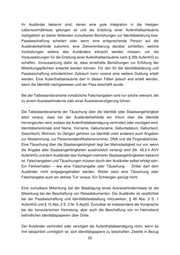 ihr Ausländer bekannt sind, denen eine gute Integration in die hiesigen Lebensverhältnisse gelungen ist und die Erteilung einer Aufenthaltserlaubnis maßgeblich an bisher fehlenden zumutbaren Bemühungen zur Identitätsklärung bzw. Passbeschaffung scheitert oder wenn eine entsprechende Person auf die Ausländerbehörde zukommt, eine Zielvereinbarung darüber schließen, welche Vorleistungen seitens des Ausländers erbracht werden müssen, um die Voraussetzungen für die Erteilung einer Aufenthaltserlaubnis nach § 25b AufenthG zu schaffen. Voraussetzung dafür ist, dass ernsthafte Bemühungen zur Erfüllung der Mitwirkungspflichten erwartet werden können. Für den für die Identitätsklärung und Passbeschaffung erforderlichen Zeitraum kann vorerst eine weitere Duldung erteilt werden. Eine Aufenthaltserlaubnis darf in diesen Fällen jedoch erst erteilt werden, wenn die Identität nachgewiesen und der Pass beschafft wurde. Bei der Tatbestandsvariante vorsätzliche Falschangaben sind nur solche relevant, die zu einem Ausreisehindernis oder einer Ausreiseverzögerung führen. Die Tatbestandsvariante der Täuschung über die Identität oder Staatsangehörigkeit setzt voraus, dass bei der Ausländerbehörde ein Irrtum über die Identität hervorgerufen wird, sodass die Aufenthaltsbeendigung verhindert oder verzögert wird. Identitätsmerkmale sind Name, Vorname, Geburtsname, Geburtsdatum, Geburtsort, Geschlecht, Wohnort. Im Übrigen gehören zur Identität unter anderem auch Angaben zur Abstammung, zur Personenidentifikationsnummer, DNA und die Fingerabdrücke. Eine Täuschung über die Staatsangehörigkeit liegt bei Mehrstaatigkeit nur vor, wenn die Angabe aller Staatsangehörigkeiten ausdrücklich verlangt wird (Nr. 49.2.4 AVV AufenthG) und dem Ausländer das Vorliegen mehrerer Staatsangehörigkeiten bekannt ist. Falschangaben und Täuschungen müssen durch den Ausländer selbst erfolgt sein. Ein Fehlverhalten – wie eine Falschangabe oder Täuschung - Dritter darf dem Ausländer nicht entgegengehalten werden. Weiter setzt eine Täuschung oder Falschangabe auch ein aktives Tun voraus. Ein Schweigen genügt nicht. Eine zumutbare Mitwirkung bei der Beseitigung eines Ausreisehindernisses ist die Mitwirkung bei der Beschaffung von Reisedokumenten. Der Ausländer ist verpflichtet bei der Passbeschaffung und Identitätsfeststellung mitzuwirken, § 48 Abs. 3 S. 1 AufenthG und § 15 Abs. 2 S. 2 Nr. 6 AsylG. Zumutbar ist insbesondere die Vorsprache bei der konsularischen Vertretung, aber auch die Beschaffung von im Heimatland befindlichen Identitätspapieren über Dritte. Der Ausländer verhindert oder verzögert die Aufenthaltsbeendigung nicht, wenn es ihm tatsächlich unmöglich ist, sich Identitätspapiere zu beschaffen. Zweifel in Bezug 20