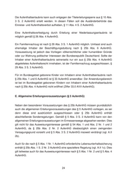 Die Aufenthaltserlaubnis kann auch entgegen der Titelerteilungssperre aus § 10 Abs. 3 S. 2 AufenthG erteilt werden. In diesen Fällen soll die Ausländerbehörde das Einreise- und Aufenthaltsverbot aufheben, § 11 Abs. 4 S. 2 AufenthG. Eine Aufenthaltsverfestigung durch Erteilung einer Niederlassungserlaubnis ist möglich gemäß § 26 Abs. 4 AufenthG. Ein Familiennachzug ist nach § 29 Abs. 3 S. 1 AufenthG möglich. Umfasst sind auch ehemalige Inhaber der Beschäftigungsduldung nach § 25b Abs. 6 AufenthG. Voraussetzung ist jedoch das Vorliegen völkerrechtlicher oder humanitärer Gründe oder zur Wahrung politischer Interessen der Bundesrepublik Deutschland. Sollte der Inhaber einer Aufenthaltserlaubnis seinerseits nur ein aus § 25b Abs. 4 AufenthG abgeleitetes Aufenthaltsrecht innehaben, ist der Familiennachzug ausgeschlossen, § 29 Abs. 3 S. 3 AufenthG. Für im Bundesgebiet geborene Kinder von Inhabern einer Aufenthaltserlaubnis nach § 25b Abs. 1 und 6 AufenthG ist § 33 AufenthG anwendbar. Der Anwendungsbereich ist bei im Bundesgebiet geborenen Kindern von Inhabern einer Aufenthaltserlaubnis nach § 25b Abs. 4 AufenthG nicht eröffnet (Ziffer 33.0 AVV-AufenthG). E. Allgemeine Erteilungsvoraussetzungen (§ 5 AufenthG) Neben den besonderen Voraussetzungen des § 25b AufenthG müssen grundsätzlich auch die allgemeinen Erteilungsvoraussetzungen des § 5 AufenthG vorliegen, es sei denn diese sind ausdrücklich ausgeschlossen oder § 25b AufenthG enthält abschließende Sonderregelungen. Gemäß § 5 Abs. 3 S. 2 AufenthG kann von den allgemeinen Erteilungsvoraussetzungen im Ermessenswege abgesehen werden. Dies gilt nicht für das Ausweisungsinteresse gemäß § 54 Abs. 1 und Abs. 2 Nr. 1 und 2 AufenthG, da § 25b Abs. 2 Nr. 2 AufenthG diesbezüglich einen zwingenden Versagungsgrund vorsieht und § 5 Abs. 3 S. 2 AufenthG insoweit verdrängt (vgl. A.II 2b). Auch für die nach § 5 Abs. 1 Nr. 1 AufenthG erforderliche Lebensunterhaltssicherung enthält § 25b Abs. 1 S. 2 Nr. 3 AufenthG eine speziellere Regelung (vgl. A.II 1c). Dies gilt teilweise auch für das Ausweisungsinteresse nach § 5 Abs. 1 Nr. 2 und § 5 Abs. 4 AufenthG. 24
