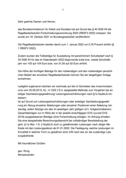-2- Sehr geehrte Damen und Herren, das Bundesministerium für Arbeit und Soziales hat auf Grund des § 40 SGB XII die Regelbedarfsstufen-Fortschreibungsverordnung 2022 (RBSFV 2022) erlassen. Sie wurde am 18. Oktober 2021 im Bundesgesetzblatt veröffentlicht. Die Regelbedarfsstufen werden damit zum 1. Januar 2022 um 0,76 Prozent erhöht (§ 1 RBSFV 2022). Zudem wurden die Teilbeträge für Ausstattung mit persönlichem Schulbedarf nach § 34 SGB XII für das im Kalenderjahr 2022 beginnende erste bzw. zweite Schulhalb- jahr von 103 auf 104 Euro bzw. von 51,50 auf 52 Euro erhöht. Die Höhe der künftigen Beträge für den notwendigen und den notwendigen persönli- chen Bedarf der einzelnen Regelbedarfsstufen können Sie der beigefügten Anlage entnehmen. Lediglich ergänzend möchten wir nochmals auf die im Schreiben des Innenministeri- ums vom 20.09.2019, Az.: 4-1353.1/2-4, dargestellte Methode zum Vorgehen bei an- teiliger Sachleistungsgewährung/ Leistungseinschränkungen nach §1a AsylbLG hin- weisen: Ist auf Grund von Leistungseinschränkungen oder anteiliger Sachleistungsgewäh- rung ein Abzug einzelner Abteilungen oder einzelner Positionen einer Abteilung not- wendig, sollen Abzüge von den im jeweiligen Jahr gültigen (d.h. fortgeschriebenen) Gesamtbeträgen nur in Höhe der in der jeweils einschlägigen EVS (zurzeit EVS 2018) ausgewiesenen Beträge ohne Fortschreibung erfolgen. Im Anhang erhalten Sie eine beispielhafte Berechnungsübersicht bei vollständiger Bereitstellung der gem. § 1a Abs. 1 S. 2 AsylbLG noch zu gewährenden Leistungen nach obiger Me- thode mit den Leistungssätzen ab 01.01.2022. Die Festlegung, welche Leistungen im Einzelfall in welcher Form zu gewähren sind, trifft nach wie vor die zuständige Leis- tungsbehörde. Mit freundlichen Grüßen gez. Rung Ministerialrätin