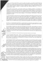 Pr Dans son arret du 8 mars 2001, la Cour de justice avait retenu, & la charge du Grand-Duche de Luxembourg, un manquement aux obligations pr&vues par certaines dispositions, enumerees au dispositif de l’arr&t, de la directive 91/676/CEE du Conseil du 12 decembre 1991. La Cour n’avait pas ete en mesure de tenir compte de l'adoption, posterieure a la prise en delibere de l’affaire, du reglement grand-ducal du 24 novembre 2000 concernant l'utilisation de fertilisant azotes dans l’agriculture (M&morial A, n? 124. du 11 decembre 2000, p. 2856). ' Dans sa lettre du 29 mai 2001, la Commission estime que ce r&glement, posterieur & la procedure en constatation de manquement introduite devant la Cour de justice, ne repondrait pas sur tous les points aux objectifs de la directive. Elle affirme m&me que le reglement meconnaftrait l’obligation du Grand-Duche de Luxembourg, aux termes de l'article 228 CE, d’executer l’arr&t de la Cour de justice ayant constate le manquement anterieur. Elle estime que, de ce fait, le Grand-Duche de Luxembourg serait expos& ä une condamnation au paiement d’une somme forfaitaire ou d’une astreinte, conformement & l'article 228, paragraphe 2 du traite. 2. Le gouvernement du Grand-Duche de Luxembourg ne partage pas cette lecture de l'arr&t de la Cour de | justice du 8 mai 2001 d’une part, de l’article 228 du traite d’autre part. Un manquement a l'article 228 - destine a garantir l’autorite des arr&ts rendus par la Cour de justice — n'est caracterise que si, en prenant apres l'intervention d’un arr&t de la Cour de justice les mesures d’ordre legislatif ou reglementaire qu’il | estime n&cessaires afin d’assurer la transposition de la directive, ’Etat membre meconnait non seulement | les dispositions de la directive, mais encore l’arr&t de la Cour de justice ayant constate son manguement | N anterieur. || faut, en d’autres termes, pour que l’article 228 soit applicable, que les griefs que la Commission fait valoir au vu des dispositions legislatives ou reglementaires de transposition soient identiques aux griefs que la Cour de justice avait retenus, avant lesdites mesures legislatives ou reglementaires, par son arr&t retenant le manquement de l’Etat membre aux dispositions de la directive. \L Or on constate, a la lecture de la lettre de la Commission du 29 mai 2001, que les griefs qui s’y trouvent formules sont des griefs nouveaux par rapport aux griefs retenus par la Cour de justice. Devant la Cour de justice, j) n'etait question ni de l’extension, pretendument n&cessaire, & ’ensemble du territoire national de 0! certaines restrictions prevues pour les zones de protection des eaux, ni des sols geles superficiellement, ni G ; de la fixation de la limite d’apport d’azote aux cultures de l&gumineuses, etc. Pour tous ces griefs nouveaux, Ko application de l’article 228 du traite a ’encontre du Grand-Duch& de Luxembourg n'est, objectivement, pas ie y> RD ü H } envisageable. eo 06 I“ C'est ä tort par consequent que l'article 228 CE est invoque dans la lettre de la Commission. 2? i a we 3. Ceci dit, abstraction faite du grief - infond& — de manquement & l'obligation de prendre les mesures que a? comporte l'execution de larret de la Cour de justice, le gouvernement du Grand-Duche de Luxembourg c estime que, du fait de ladoption du reglement grand-ducal du 24 novembre 2000, il ne se trouve pas non ) plus en position de manquement aux dispositions de la directive, que celles-ci aient et&e invoquees dans l'arr&t de la Cour de justice ou non. Le gouvernement constate, ä la lecture de la lettre de la Commission, que la Commission semble considerer N) comme obligatoire, pour les Etats membres, l'adoption de certaines mesures qui paraissent souhaltäbles aux services de la Commission, mais qui ne font pas partie des obligations imposees aux Etats membres aux.termes de la directive. La directive laisse, au contraire, une marge d’appreciation considerable aux Etats membres quant aux mesures qu'ils entendent prescrire aux agriculteurs. Aucun article de la directive, ni Pr aucune annexe ne prescrit imperativement les mesures d'interdiction, ou de restriction severe, que la rt ‚Commission fait grief au Grand-Duche de Luxembourg de ne pas avoir adoptees. Le gouvernement estime a avoir transpose la directive correctement et de maniere & assurer la r&alisation de ses objectifs. II prendra we 8 position, ci-apres, par rapport aux differents griefs detailles formules dans la lettre de la Commission. 4. Pour ce qui est du grief visant l’application des dispositions plus s&veres prescrites pour les zones de protection des eaux potables & l’ensemble du territoire nationale : en fait, la distinction entre les deux types de zones est justifiee au niveau scientifique. En effet, les dispositions speciales applicables dans les zones de protection doivent tenir compte d’autres facteurs comme la prevention efficace des contaminations microbiologiques des eaux souterraines captees pour la production d’eau potable. Concr&tement, les memes fertilisants, entrainent ä la fois des effets d’apport de nitrate aux eaux et aussi des effets, specifiques aux zones de protection des eaux destinees A la consommation humaine, de contamination microbiologique. Ce deuxieme effet est particulierement sensible, compte tenu de la geographie du Grand-Duche de | | gr ) Luxembourg, pendant la p&riode hivernale, caracterisee par de plus fortes pluies. TE M / ost eo ” Pour ce aui est des zones du territoire national ne faisant pas partie des zones de protection des eaux . , le potables, une restriction du m&me type que celle imposee pour les zones de protection des eaux potables „, # N’apparait pas comme indispensable, le risque d'une contamination microbiologique n’etait pas pertinent. Du ' wer Ä : . x R R | “ „Se geint de vue de la prevention de la pollution par les nitrates - point de vue qui est seul 4 s’appliquer & ces % I : A Fexe