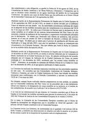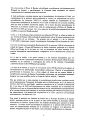Hay que sefialar que, en respuesta al citado escrito, las autoridades espafiolas han remitido a la Comisiön diversas comunicaciones informando de las medidas adoptadas por las Comunidades Autönomas concernidas. Se relacionan a continuaciön, de manera cronolögica y resumida, las distintas informaciones recibidas de las autoridades espafolas en relaciön con este asunto. Mediante escrito de la Representaciön Permanente de Espafia ante la Uniön Europea de 20 de junio de 2003 (A-24/8551), se remiten una serie de informaciones relativas a la Comunidad Autönoma de Baleares. Asi, se informa que el Gobierno de las Islas Baleares ha aprobado, en sesiön celebrada el 9 de mayo de 2003, el denominado Decreto de Zonas Sensibles, que determina y regula todo lo referente a dichas äreas. Las autoridades espafiolas han trasmitido una copia del Decreto 49/2003, de 9 de mayo, por el que se declaran las zonas sensibles en las Illes Balears, publicado en el Boletin Oficial de la Comunidad Autönoma de 29 de mayo de 2003. Mediante escrito de la Representaciön Permanente de Espafia ante la Uniön Europea de 25 de julio de 2003 (A-24/10084), se remiten las observaciones de la Comunidad Autönoma de Canarias con respecto a la sentencia del TICE de 15 de mayo de 2003. Las autoridades autonömicas mantenian en dicha respuesta que en Canarias sölo existen zonas menos sensibles, pero no zonas sensibles. Se sefiala que dicha Comunidad Autönoma entiende que, ante la ausencia de zonas sensibles segün los estudios realizados por el örgano competente, el incumplimiento se refiere a la falta de publicaciön en el Boletin Oficial de Canarias de dicha ausencia de “zonas sensibles”. Se indica que, por este motivo, y dada la tardanza en la tramitaciön del expediente administrativo de aprobaciön del Plan Hidrolögico de Canarias, se ha instado del örgano competente de dicha Comunidad Autönoma la adopciön de una resoluciön que sea publicada en el Boletin Oficial de Canarias para dar asi cumplimiento al articulo 5 de la Directiva 9V/271/CEE. Se indica que esta circunstancia seria comunicada posteriormente a la Comisiön Europea. Hay que sefialar que ha sido en el marco del procedimiento de infracciön 2002/2123 antes mencionado, y en respuesta a la carta de emplazamiento de la Comisiön, remitida mediante escrito de la Representaciön Permanente de Espafia ante la Uniön Europea de 29 de marzo de 2004, cuando las autoridades espafiolas han comunicado una copia de la Orden de 27 de enero de 2004, del Consejero de Infraestructuras, Transportes y Vivienda del Gobierno de Canarias, mediante la cual se declaran zonas sensibles en las aguas maritimas continentales del ämbito de la Comunidad Autönoma de Canarias en cumplimiento de lo dispuesto en la Directiva 91/271/CEE. Por lo tanto, las autoridades espafiolas competentes han revisado su postura inicial en este tema, designando finalmente zonas sensibles. Esta Orden ha sido publicada en el Boletin Oficial de Canarias de 4 de febrero de 2004. Mediante escrito de la Representaciön Permanente de Espafia ante la Uniön Europea de 4 de agosto de 2003 (A-24/10563), se remite el informe elaborado por la Generalidad Valenciana en relaciön con este asunto. Se sefiala que tras la declaraciön oficial de zonas sensibles realizada por el Ministerio de Medio Ambiente mediante Resoluciön de 25 de mayo de 1998, y al no existir cuencas intracomunitarias en el ämbito de la Comunidad Valenciana, quedö pendiente la designaciön oficial de las zonas costeras, cuyo trämite corresponde a la propia Comunidad Autönoma. Se informa que, en este sentido y para 3