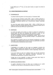 Il sera &tabli pour la 1°° fois, six mois apres l'entrö&e en vigueur du contrat de gestion. 2.2 - CARACTERISTIQUES DU CONTRAT A. PLURIANNUALITE Le präsent contrat de gestion est conclu jusqu’au 31 däcembre 2005. Au cours des deux premieres anndes (2000 - 2001), la SPGE s’attachera & finaliser la r&alisation du programme fix& par l’arröte du 18 mai 1995 et/ou par les arrätös modificatifs apportös par le Gouvernement intögrant l’egouttage prioritaire. Au cours des quatre anndes suivantes (2002 - 2005), la SPGE fixera ses actions en fonction des objectifs d&termines dans le programme d’action pour la qualit& des eaux tels que definis par le gouvernement. B. CONTINUITE Le contrat de gestion doit prendre en compte le principe de continuite du service public. En effet, les contraintes que rencontre le cycle de l’eau necessitent la cr&ation de möcanismes de pr&vention et de protection. De plus, une traduction correcte du d&veloppement durable dans le prix de l'eau par la mutualisation des coüts permettra d'integrer les op6rateurs isoles dans les investissements. Pour atteindre les objectifs voulus par les directives europdennes en matiere d’epuration, il est indispensable de mettre en place une planification permettant une continuite des investissements dans le temps. C. L’ADAPTATION L’optimisation de la gestion de l'eau exige une adaptation constante des actions. Celles-ci doivent &tre mendes dans un souci de coordination, pour ‚ensemble des investissements r&alis6es en mati&re d’&gouttage, d’epuration et de protection. II en est de mäme au sujet de la politique tarifaire qui doit ätre strictement determinse en fonction des ressources financieres necessaires aux investissements garantissant une gestion durable de l’eau. Compte tenu de ces imperatifs, le pr&sent contrat pourra faire l'objet de modifications ou d'adaptations par voie d’avenants. D. GARANTIE DU SERVICE PUBLIC La gestion rationnelle de l’eau de m&me que le maintien de sa qualite constituent une des bases du developpement durable de la Wallonie. SPGE - Contrat de gestion -version approuvee par le Gouvernement wallon en date du 03/02/00 8