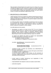 Dans cet esprit, le Gouvernement est le garant vis-Aa-vis du citoyen d'un service permettant de disposer de cette ressource en qualit& et en quantite suffisante & un coüt le plus faible possible. Le contrat de gestion doit favoriser l’optimisation de ce service public, au d&part des organismes existants, qui seront invites A &voluer en fonction des dispositions r&glementaires & venir. E. AMELIORATION DE LA PERFORMANCE L’effort important & fournir pour atteindre les objectifs d’assainissement fix&s par l’Union europeenne et la n&cessit& de mettre en place une politique tarifaire indiquant le coüt-verite de l'’eau imposent une approche integree et performante de la gestion du cycle de l’eau. Le contrat de gestion traduit ces imp&ratifs de performance dans les secteurs de la protection des captages, de l'assainissement public et de l’&gouttage prioritaire par la mise en oeuvre d’outils internes et externes notamment en prenant compte de la sensibilite du milieu recepteur. Les outils internes sont les suivants : ‘“ r&mun6ration du capital sur la base du taux OLO 10 ans de l’exercice concern& calcul& comme suit : moyenne du taux du dernier jour bancaire de chaque mois de l’exercice pröcit& du benchmark (reference Banque Nationale), auquel s’ajoute un dividende supplömentaire de maximum 4% determine par le niveau des rösultats atteints par rapport aux objectifs. Le respect des objectifs sera evalu& en fonction des responsabilitös incombant exclusivement A la SPGE et notamment: - sa capacite A respecter les ddlais ; - sa contribution au degagement d’&conomies de coüts ; Les ratios : nbre d’EH epurös (A concurrence de 85 %) nbre d’EH a Epurer nbre de prises d’eau protögees (A concurrence de 15 %) nbre de prises d’eau a proteger constituent la base, ä pr&ciser par convention, de la determination du dividende complementaire. Le nombre d’EH precit& se rapporte au nombre d’EH Epures conformement a la definition du terme « agglome6ration » A ces EH peuvent s’ajouter, le cas &ächeant, les EH provenant de l’epuration d’agglomerations d&eterminges par le Gouvernement en fonction de priorit@s environnementales. x °e normes guides de gestion financiere qui sont d’application a toute entreprise ä vocation de financement; °. responsabilisation des dirigeants investis de mandats ä duree limitee ; °. autonomie de gestion. SPGE - Contrat de gestion -version approuvee par le Gouvernement wallon en date du 03/02/00 9