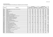 Seite 38 von 93 Revierbereich Oranienburg Frage 34: Erfasste Fälle, Aufgeklärte Fälle, Aufklärungsquoten, Häufigkeitskennzahlen für alle Deliktsfelder Erfasste Fälle Aufgeklärte Fälle Schlüssel Bezeichnung Anzahl gesamt Häufigkeitszahl Anzahl gesamt AQ in % 2010 2011 2010 2011 2010 2011 2010 2011 ------ Straftaten insgesamt 6.300 5.731 8.941 6.200 3.584 3.188 56,9 55,6 000000 ST gg. das Leben 5 3 7 3 5 3 100,0 100,0 010000 Mord 1 0 1 1 100,0 010079 Sonstiger Mord 1 0 1 1 100,0 020000 Totschlag und Tötung auf Verlangen 3 1 4 1 3 1 100,0 100,0 020010 Totschlag 3 1 4 1 3 1 100,0 100,0 030000 Fahrlässige Tötung - nicht i.V.m. Verkehrsunfall - 2 1 3 1 2 1 100,0 100,0 100000 ST gg. die sex. Selbstbestimmung 46 30 65 32 35 25 76,1 83,3 110000 unter Gewaltanw. o. Ausnutzen e. Abhängigkeitsverh. 11 6 16 6 12 4 109,1 66,7 111000 Vergewaltigung und sex. Nötigung 4 3 6 3 5 2 125,0 66,7 111100 Vergewalt./sex. Nötigung überfallartig (Einzeltäter) 1 1 0 2 200,0 111400 Sonstige Straftaten gemäß § 177 Abs. 2 Nr. 1, Abs. 3 und 4 StGB 3 3 4 3 3 2 100,0 66,7 112000 Sonstige sex. Nötigung 6 3 9 3 6 2 100,0 66,7 113000 Sex. Missbr. v. Schutzbef. pp., u. Ausnutzung e. Amtsst. o.e. Vertrauensverh. 1 1 0 1 100,0 113040 Sex. Missbr. u. Ausnutz. e. Berat-/Behandl-/Betreu-verh. z.N.v. Pers. ab 14 1 1 0 1 100,0 130000 Sexueller Missbrauch 25 17 35 18 17 17 68,0 100,0 131000 Sex. Missbr. von Kindern 12 12 17 13 9 11 75,0 91,7 131010 Handlungen gemäß § 176 Abs. 5 StGB 3 4 0 2 66,7 131100 Sexuelle Handlungen gemäß § 176 Abs. 1 und 2 StGB 4 8 6 9 4 7 100,0 87,5 131200 Exhibitionistische/sex. Handlungen vor Kindern 1 1 0 0,0 131400 Einwirken auf Kinder 2 3 0 1 50,0 131500 Vollzug des Beischlafs mit einem Kind oder Vornahme einer ähnl. sex. Handlung 3 0 3 3 100,0 131700 Sonstiger schwerer sex. Missbr. von Kindern 2 1 3 1 2 1 100,0 100,0 132000 Exhibitionistische Handlungen und Erregung öffentlichen Ärgernisses 7 2 10 2 2 4 28,6 200,0 132010 Exhibitionistische Handlungen 7 2 10 2 2 4 28,6 200,0 133000 Sex. Missbr. von Jugendlichen 5 2 7 2 5 1 100,0 50,0 134000 Sex. Missbr. Widerstandsunfähiger 1 1 1 1 1 1 100,0 100,0 140000 Ausnutzen sexueller Neigung 10 7 14 8 6 4 60,0 57,1 143000 Verbreitung pornographischer Schriften (Erzeugnisse) 10 7 14 8 6 4 60,0 57,1 143010 Sonstige Verbreitung pornograph. Schriften (Erzeugnisse) 2 1 3 1 1 1 50,0 100,0 143200 Verbreitung, Erwerb, Besitz und Herstellung kinderpornographischer Schriften 1 0 1 0,0 143300 Besitz/Verschaffung von Kinderpornographie 1 2 1 2 1 2 100,0 100,0 143400 Verbreitung von Kinderpornographie 6 3 9 3 3 1 50,0 33,3 143600 Besitz/Verschaffung von Jugendpornographie 1 1 0 1 100,0 200000 Rohheitsdelikte und ST gg. die persönliche Freiheit 772 774 1.096 837 673 698 87,2 90,2 210000 Raub, räuberische Erpressung und räuberischer Angriff auf Kraftfahrer 27 34 38 37 15 18 55,6 52,9