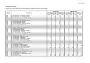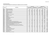 Seite 51 von 93 Revierbereich Oranienburg Frage 34: Erfasste Fälle, Aufgeklärte Fälle, Aufklärungsquoten, Häufigkeitskennzahlen für alle Deliktsfelder Erfasste Fälle Aufgeklärte Fälle Schlüssel Bezeichnung Anzahl gesamt Häufigkeitszahl Anzahl gesamt AQ in % 2010 2011 2010 2011 2010 2011 2010 2011 552000 Inverkehrbringen von Falschgeld §§ 146 Abs. 1 Nr. 3, 147 StGB 2 2 3 2 2 2 100,0 100,0 552020 Inverkehrbringen von Falschgeld gemäß § 147 StGB (nach gutgläubigem Erwerb) 2 2 3 2 2 2 100,0 100,0 553000 Fälsch. v. Zahlungskarten mit/ohne Garantiefunktion, Schecks u. Wechseln 82 3 116 3 2 0,0 66,7 553100 Gebr. falscher Zahlungsk. mit oder ohne Garantiefunktion, Schecks und Wechsel 1 2 1 2 2 0,0 100,0 553110 Gebrauch falscher Zahlungskarten o. Garantiefunktion, Schecks und Wechsel 1 1 0 0,0 553120 Gebrauch falscher Zahlungskarten mit Garantiefunktion 2 0 2 2 100,0 553200 Nachmachen, Verfälschen, Verschaffen, Feilhalten o. Überl. falscher Zahlungsk 81 1 115 1 0,0 0,0 553210 Nachm., Verfälsch, Verschaff falscher Zahlungsk. o. Garantiefunktion 81 1 115 1 0,0 0,0 560000 Insolvenzstraftaten 2 1 3 1 2 1 100,0 100,0 561000 Bankrott 2 3 0 2 100,0 564000 Gläubigerbegünstigung 1 0 1 1 100,0 600000 Sonstige Straftatbestände (StGB) 1.766 1.592 2.506 1.722 941 889 53,3 55,8 610000 Erpressung 2 4 3 4 1 4 50,0 100,0 610079 Sonstige Erpressung 2 4 3 4 1 4 50,0 100,0 620000 Widerstand gg. die Staatsgewalt und ST gg. die öff. Ordnung 184 191 261 207 167 168 90,8 88,0 620001 Störung des öffentl. Friedens durch Androhung von ST 9 3 13 3 8 2 88,9 66,7 620003 Bildung krimineller Vereinigungen 1 1 0 1 100,0 620005 Amtsanmaßung 2 2 3 2 2 0,0 100,0 620006 Missbr. von Titeln, Berufsbezeichnungen, Abzeichen 2 1 3 1 2 100,0 0,0 620009 Verstrickungsbruch, Siegelbruch 3 1 4 1 2 1 66,7 100,0 620013 Missbr. von Notrufen und Beeintr. v. Unfallverhütungs- und Nothilfemitteln 4 6 6 6 2 3 50,0 50,0 620014 Verstoß gg. Weisung während Führungsaufsicht 1 0 1 1 100,0 621000 Widerstand gg. die Staatsgewalt 21 25 30 27 20 21 95,2 84,0 621010 Öffentliche Aufforderung zu Straftaten 5 0 5 2 40,0 621020 Widerstand gg. Vollstreckungsbeamte 20 19 28 21 19 18 95,0 94,7 621021 Widerstand gegen Polizeivollzugsbeamte 20 17 28 18 19 16 95,0 94,1 621029 Widerstand gegen Vollstreckungsbeamte (ohne Polizeivollzugsbeamte) 2 0 2 2 100,0 621040 Gefangenenbefreiung 1 1 1 1 1 1 100,0 100,0 622000 Hausfriedensbruch 111 134 158 145 104 120 93,7 89,6 622100 Hausfriedensbruch gemäß § 123 StGB 111 134 158 145 104 120 93,7 89,6 623000 Landfriedensbruch 1 1 0 1 100,0 623010 Landfriedensbruch gemäß § 125 StGB 1 1 0 1 100,0 624000 Vortäuschen einer Straftat 19 14 27 15 19 14 100,0 100,0 624010 Vortäuschen einer Straftat gg. die sex. Selbstbestimmung 1 2 1 2 1 2 100,0 100,0 624079 Vortäuschen einer sonstigen Straftat 12 6 17 6 12 6 100,0 100,0 624100 Vortäuschen eines Raubes 2 1 3 1 2 1 100,0 100,0