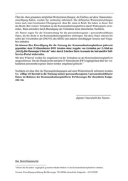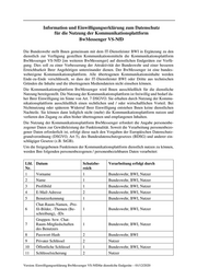 Über die oben genannten möglichen Weiterentwicklungen, die Einfluss auf diese Datenschutz- einwilligung haben, werden Sie rechtzeitig informiert. Die definierten Weiterentwicklungen treten nach einer bestimmten Übergangszeit ohne Ihr zutun in Kraft. Sie haben in dieser Zeit das Recht, Ihre weitere Teilnahme an der Kommunikationsplattform durch Widerspruch zu be- enden. Ihnen entstehen durch Beendigung der Teilnahme keine dienstlichen Nachteile. Als Nutzer tragen Sie die Verantwortung für die personenbezogenen / personenbeziehbaren Daten, die Sie direkt in die Kommunikationsplattform einbringen. Für diese Daten müssen Sie selbst die Vorschriften der DSGVO, des BDSG und anderer einschlägiger Gesetze und Vorga- ben einhalten. Sie können Ihre Einwilligung für die Nutzung der Kommunikationsplattform jederzeit gegenüber dem IT-Dienstleister BWI formlos ohne Angabe von Gründen per E-Mail an „bwi.fp.BwMessenger@bwi.de“ oder durch Löschen Ihres Accounts im IntranetBw Self- Service-Portal widerrufen. Mit dem Widerruf werden Sie umgehend von der Teilnahme an der Kommunikationsplattform ausgeschlossen. Die der Bundeswehr und dem IT-Dienstleister BWI zugänglichen über Sie vor- 2 handenen personenbezogenen Daten werden umgehend gelöscht. Nachdem ich oben über die Nutzungsbedingungen und mein Widerrufsrecht informiert worden bin, willige ich hiermit in die Nutzung meiner personenbezogenen / personenbeziehbarer Daten im Rahmen der Kommunikationsplattform BwMessenger für dienstliche Endge- räte ein. ___________________________ digitale Unterschrift des Nutzers Ihre Betroffenenrechte 2 Durch Sie für andere zugänglich gemachte Inhalte bleiben in der Kommunikationsplattform erhalten. Version: Einwilligungserklärung BwMessenger VS-NfDfür dienstlcihe Endgeräte – 01/12/2020