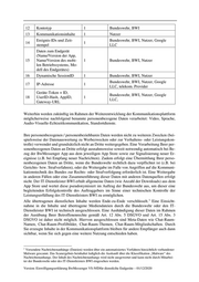 12 Kontotyp 1 Bundeswehr, BWI 13 Kommunikationsinhalte 1 Nutzer Ereignis-IDs und Zeit- Bundeswehr, BWI, Nutzer, Google 14 1 stempel LLC Daten zum Endgerät (Name/Version der App, 15 Name/Version des mobi- 1 Bundeswehr, BWI, Nutzer len Betriebssystems, Mo- dell des Endgerätes) 16 Dynamische SessionID 1 Bundeswehr, BWI, Nutzer Bundeswehr, BWI, Nutzer, Google 17 IP-Adresse 1 LLC, telekom. Provider Geräte-Token + ID, Bundeswehr, BWI, Nutzer, Google 18 UserID-Hash, AppID, 1 LLC, Gateway-URL Weiterhin werden zukünftig im Rahmen der Weiterentwicklung der Kommunikationsplattform möglicherweise nachfolgend benannte personenbezogene Daten verarbeitet: Video, Sprache, Audio-Visuelle-Echtzeitkommunikation, Standortdienste. Ihre personenbezogenen / personenbeziehbaren Daten werden nicht zu weiteren Zwecken (bei- spielsweise der Datenauswertung zu Werbezwecken oder zur Verhaltens- oder Leistungskon- trolle) verwendet und grundsätzlich nicht an Dritte weitergegeben. Eine Verarbeitung Ihrer per- sonenbezogenen Daten an Dritte erfolgt ausnahmsweise soweit notwendig automatisch bei Be- zug der BwMessenger App aus dem jeweiligen App Store sowie zur Signalisierung neuer Er- eignisse (z.B. bei Empfang neuer Nachrichten). Zudem erfolgt eine Übermittlung Ihrer perso- nenbezogenen Daten an Dritte, wenn die Bundeswehr rechtlich dazu verpflichtet ist (z.B. bei Gerichts- bzw. Strafverfahren), oder die Weitergabe im Falle von Angriffen auf die Kommuni- kationstechnik des Bundes zur Rechts- oder Strafverfolgung erforderlich ist. Eine Weitergabe in anderen Fällen oder eine Zusammenführung dieser Daten mit anderen Datenquellen erfolgt nicht. Der IT-Dienstleister BWI erhält allgemeine Daten (wie Anzahl der Downloads) aus dem App Store und wertet diese pseudonymisiert im Auftrag der Bundeswehr aus, um dieser eine begleitenden Erfolgskontrolle des Auftraggebers im Sinne einer technischen Kontrolle der Leistungserfüllung des IT-Dienstleisters BWI zu ermöglichen. 1 Alle übertragenen dienstlichen Inhalte werden Ende-zu-Ende verschlüsselt. Eine Einsicht- nahme in die Inhalte und übertragene Mediendateien durch die Bundeswehr oder den IT- Dienstleister BWI ist technisch ausgeschlossen. Eine Aushändigung dieser Daten im Rahmen der Ausübung Ihrer Betroffenenrechte gemäß Art. 12 Abs. 5 DSGVO und Art. 15 Abs. 3 DSGVO ist daher nicht möglich. Hiervon ausgeschlossen sind Meta-Daten wie Chat-Raum- Namen, Chat-Raum-Profilbilder, Chat-Raum-Themen, Chat-Raum-Mitgliedschaften. Durch Sie erzeugte Inhalte in der Kommunikationsplattform bleiben für andere Empfänger auch dann sichtbar, wenn Sie sich gegen eine weitere Nutzung entschieden haben. 1 Versendete Nachrichtenanhänge (Dateien) werden über ein automatisiertes Verfahren hinsichtlich vorhandener Malware gescannt. Das Scanergebnis beinhaltet lediglich die Auskunft über die Klassifikation „Malware“ des Nachrichtenanhangs. Der Inhalt des Nachrichtenanhangs wird nicht ausgewertet und kann nicht durch Mitarbei- ter der Bundeswehr oder des IT-Dienstleisters BWI eingesehen werden. Version: Einwilligungserklärung BwMessenger VS-NfDfür dienstlcihe Endgeräte – 01/12/2020
