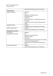 Pro3D – Ergebnisbericht Teil 2 Version 1.0 | Final - Tag des Verfahrensabschlusses (zur Archivierung) Einwohnerantrag Anzeige / Sammlung - EreignisID - Titel - Gegenstand / wesentlicher Inhalt - Onlineformular-URL - Statistik-URL - Start der Sammlung (+ 1 Jahr Deaktivierung der eUE- Sammlung) - Ereignis-URL der LAL (für weitere Verfahrensinforma- tionen) Zulässigkeitsprüfung - EreignisID - Antragseingang (damit Beendigung der Sammlung) Verfahren abgeschlossen - EreignisID - Tag des Verfahrensabschlusses (zur Archivierung) Bürgerbegehren/-entscheid Durchführung - EreignisID Bürgerbegehren/Sammlung - Titel - Gegenstand / wesentlicher Inhalt - Onlineformular-URL - Statistik-URL - Sammlungszeitraum (erstes Datum Start der Sammlung, zweites Datum Beendigungsdatum) - Ereignis-URL der LAL (für weitere Verfahrensinforma- tionen) Verfahren abgeschlossen - EreignisID - Tag des Verfahrensabschlusses (zur Archivierung) Seite 48 von 53