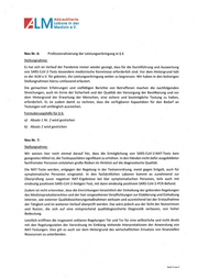 Neu Nr. 6: Professionalisierung der Leistungserbringung in § 6 Stellungnahme: Es hat sich im Verlauf der Pandemie immer wieder gezeigt, dass für die Durchführung und Auswertung von SARS-CoV-2-Tests besondere medizinische Kenntnisse erforderlich sind. Vor dem Hintergrund hält es der ALM e.V. für geboten, die Leistungserbringung weiter zu begrenzen. Wir haben in den bisherigen Stellungnahmen hierzu umfassend erläutert. Die gemachten Erfahrungen und vielfältigen Berichte von Betroffenen machen die nachfolgenden Streichungen, auch im Sinne der Sicherheit und der Qualität der Versorgung der Bevölkerung und vor dem Hintergrund der Erwartung der Menschen, eine sichere und bestmögliche Testung zu halten, erforderlich. Es ist zudem damit zu rechnen, dass die verfügbaren Kapazitäten für den Bedarf an Testungen voll umfänglich ausreichen. Formulierungshilfe für§ 6: a) Absatz 1 Nr. 2 wird gestrichen b) Absatz 2 wird gestrichen Neu Nr. 7: Stellungnahme: Wir weisen hier noch einmal darauf . hin, dass die Ermöglichung von SARS-CoV-2-NAT-Tests kein geeignetes Mittel ist, die Testkapazitäten signifikant zu erhöhen. In den Händen nicht dafür ausgebildeter fachfremder Personen entstehen große Risiken im Hinblick auf die diagnostische Qualität. Die NAT-Teste werden, entgegen der Regelung in der Testverordnung, meist gegen Entgelt, auch für symptomatische Personen eingesetzt. In den fachärztlichen Laboren · kommt es zunehmend zur Überprüfung zuvor negativer NAT-Ergebnisse bei klar symptomatischen Personen, teils auch mit eindeutig positivem SARS-CoV-2-Antigen-Test, mit dann eindeutig positivem SARS-CoV-2-PCR-Befund. Zudem ist nicht erkennbar, dass die Einrichtungen hinsichtlich der Einhaltung der geltenden Regelungen des Medizinprodukterechtes und der hier vorgesehenen Verpflichtungen zur Etablierung und Einhaltung interner, wie externer Qualitätssicherungsmaßnahmen wirksam und ausreichend bei der Erstaufnahme der Tätigkeit und im weiteren Verlauf überprüft werden . Das wäre jedoch aus der Sicht der Nutzerinnen und Nutzer, die sich auf eine entsprechend qualitätsgesicherte Diagnostik verlassen, von hoher Bedeutung. Letztlich eröffnen die insgesamt unklaren Regelungen Tür und Tor für eine willkürliche und nicht direkt mit den Regelungszielen der Verordnung im Einklang stehende Interpretationen der Anwendung von NAT-Testungen. Dies gilt es auch vor dem Hintergrund des wirtschaftlichen Einsatzes von finanziellen Ressourcen zu unterbinden. Seite 3 von 3
