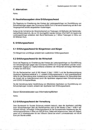 -3- Bearbettungsstand: 28.12.2021 17:28 C. Alternativen Keine. D. Haushaltsausgaben ohne Erfüllungsaufwand Die Regelung zur Erweiterung des Kreises der Leistungserbringer zur Durchführung von Schutzimpfungen gegen das Coronavirus SARS-CoV-2 hat keine Auswirkung auf die in der Vergangenheit bereits dargestellten Kostenfolgen. Aufgrund der Aufnahme der Abrechenbarkeit von Testungen mit Methoden der Nukleinsäu- reamplifikationstechnik, die vor Ort durchgeführt werden können (PoC-NAT) für bestimmte Leistungserbringer entstehen dem Bund Mehrkosten je 1 Million Testungen in Höhe von 30 Millionen Euro. · E. Erfüllungsaufwand E.1 Erfüllungsaufwand für Bürgerinnen und Bürger Für Bürgerinnen und Bürger entsteht kein zusäizlicher Erfüllungsaufwand. E.2 Erfüllungsaufwand für die W.irtschaft Durch die Regelung zur Erweiterung des Kreises der Leistungserbringer zur Durchführung von Schutzimpfungen gegen das Coronavirus SARS-CoV-2 auf Apotheken und den vorzu- . nehmenden Zugang zur lmpfsurveillance entstehen der Wirtschaft einmalige Mehrkosten in Höhe von XXX Euro. Für die Rechenzentren nach § 300 Absatz·2 Satz 1 SGB V und die Bundesvereinigung Deutscher Äpothekerverbände e. V. entsteht Erfüllungsaufwand in nicht quantifizierbarer Höhe für die Übermittlung einer Aufstellung an das Bundesministerium für Gesundheit über die Anzahl der je Kalendermonat durch die Apotheken abgerechneten Schutzimpfungen und COVID-19-lmpfzertifikate. . Da die Verordnung keine Verpflichtung von öffentlichen Apotheken zur Durchführung von Schutzimpfungen vorsieht, entsteht den Apotheken kein Erfüllungsaufwand. Davon Bürokratiekosten aus Informationspflichten Keine. E.3 Erfüllungsaufwand derVerwaltung Dem Bundesamt für Soziale Sicherung entsteht dadurch, dass die Apothe.ken zukünftig auch Schutzimpfungen über die Rechenzentren nach § 300 _Absatz 2 Satz 1 SGB V ab- rechnen können, einmaliger Erfüllungsaufwand für die konzeptionelle Anpassung des Ab- rechnungsverfahrens in Höhe von .523,20 Euro. Dabei wird angenommen, dass ein Zeitauf- wand von 8 Arbeitsstunden für den höheren Dienst bei einem Lohnkostensatz von 65,40 Euro pro Stunde anfällt.