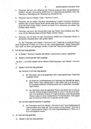 -2- Bearbeitungsstand: 23.06.2022 20:36 2. Personen, die aufgrund einer medizinischen Kontraindikation, insbesondere einer Schwangerschaft im ersten Schwangerschaftsdrittel, zum Zeitpunkt der Testung nicht gegen das Coronavirus SARS-CoV-2 geimpft werden können oder in den letz- ten drei Monaten vor der Testung aufgrund einer medizinischen Kontraindikation nicht gegen das Coronavirus SARS-CoV-2 geimpft werden konnten, · 3. Personen, die zum Zeitpunkt der Testung an klinischen Studien zur Wirksamkeit von Impfstoffen gegen das Coronavirus SARS-CoV-2 teilnehmen oder in den letzten drei Monaten vor der Testung an solchen Studien teilgenommen haben, · 4. Personen, .die sich zum Zeitpunkt der Testung aufgrund einer nachgewiesenen In- fektion mit dem Coronavirus SARS-CoV-2 in Absonderung befinden, wenn die Te- stung zur Beendigung der Absonderung erforderlich ist, 5. Personen nach § 4 Absatz 1 Satz 1 Nummer 3. und 4 6. · Personen, die am selben Tag eine Veranstaltung·in Innenräumen besuchen werden oder zu einer Person ab 60 Jahren oder einer Person mit einer Vorerkrankung mit einem hohen Risiko, schwer an Covid-19 zu erkranken, am selben Tag Kontakt ha- ben werden, 7. Personen, die durch die Corona-Warn-App des Robert Koch-Instituts eine Warnung mit der Statusanzeige erhöhtes .Risiko erhalten haben, ' 8. Personen, die mit einer mit dem Coronavirus. SARS-CoV-2 infizierten Person in demselben Haushalt leben oder gelebt haben. · · Personen nach Nummer 6 und 7 haben je Testung einen Betra9 von 3 Euro als Eigenbe- teiligung an den Leistungserbringer zu entrichten. Das jeweilige Land kann diesen Eigen- anteil übernehmen. Da.nur noch die genannten Personengruppen Anspruch auf eine Testung nach§ 4a haben, müssen diese nach§ 6 Absatz 3 Nummer 4 bei dem die Testung vornehmenden Leistungs- erbringer deh Anspruchsgrund nachweisen. · Dadurch, dass die anlasslosen Bürgertestungen im bisherigen Umfang nicht weitergeführt werden, ist die Beauftragung von weiteren Leistungserbringern nach § 6 Absatz 2 nicht mehr angezeigt. Weitere Beauftragungen sind daher ab dem 1. Juli 2022 nicht mehr zuläs- sig, Die an die berechtigten Leistungserbringer zu zahlende Vergütung für die Leistungen der Labordiagnostik mittels eines Nukleirisäurenachweises des Coronavirus SARS-CoV-2 und für die Durchführung von PoC-Antigen-Tests wird verringert. Dies ist vor dem Hintergrund der Entwicklung der zur Durchführung der Tests relevanten Kostenfaktoren angemessen, insbesondere aufgrund geringerer Sachkosten und eines niedrigeren Zeitaufwandes bei der Beratung der Testpersonen. · Mit dem Ziel einer verbesserten und zielgerichteten Abrechnungsprüfung wird der Umfang der durch die Kassenärztlichen Vereinigungen per Stichprobe zu prüfenden Leistungser- bringer und sonstiger abrechnender SteHen angehoben. Im Rahmen ihres einrichtungsbezogenen Testkonzepts sind unter anderem Pflegeeinrich- tungen berechtigt, die in der Testverordnung festgelegten monatlichen Kontingente an PoC- Antigen-Tests oder Antigentests zur Eigenanwendung über den 30. Juni 2022 hinaus zu beschaffen und zu nutzen und die insoweit entstehenden Kosten für die Beschaffung sowie die Durchführungsaufwendungen nach dem Elften Buch Sozialgesetzbuch über eine Pfle- gekasse geltend zu machen. ·