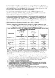 Tabelle 2: Wirksamkeit des Impfstoffs - Erstes Auftreten von COVID-19 ab 7 Tagen nach