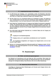 FR Bundesministerium VBS für Familie, Senioren, Frauen 2 und Jugend 27. Langzeitspeicherung/z.d.A-Verfügung (1) Im VBS können nur Vorgänge „z.d.A.“ geschrieben werden. Die Registratur setzt diese Verfügung in Abstimmung mit dem jeweiligen Fachreferat auf Vorgänge, die abgeschlossen sind. Das z.d.A.-Datum kann maximal ein halbes Jahr rückdatiert werden. (2) Mit dem Datum der z.d.A.-Schreibung beginnt die Transferfrist zu laufen. Sie beträgt ein Jahr. Innerhalb dieser Frist kann die z.d.A.-Schreibung wieder aufgehoben werden. Dies erfolgt automatisch, wenn ein neues Dokument in einen solchen Vorgang veraktet wird. (3) Nach Ablauf der Transferfrist kann ein Vorgang an das Digitale Zwischenarchiv abgegeben werden. Die Anbindung des VBS an das Digitale Zwischenarchiv erfolgt im Laufe des Jah- res 2022. Sobald die Anbindung erfolgt ist und das Abgabeverfahren starten kann, wird über die Einzelheiten informiert. Bis zur erfolgten Abgabe können die Dokumente weiterhin gelesen werden. (4) Das VBS-System zeigt der/dem Nutzenden an, in welchem Status sich ein Vorgang und seine Dokumente befinden. A , - Vorgang wurde „z.d.A.“ geschrieben und befindet sich in der Transferfrist - Vorgang ist in der Bearbeitungsphase | I - die Transferfrist ist abgelaufen, der Vorgang ist zur Abgabe bereit, es ist nur noch lesender Zugriff möglich. (5) Mit der z.d.A.-Schreibung beginnt die Aufbewahrungsfrist der Vorgänge zu laufen. Für Ein- zelheiten zu den Aufbewahrungsfristen wird auf die Unterlage „Grundzüge der Schriftqut- verwaltung“ verwiesen. VI. Anpassungen 28. Fehler- und Anforderungsmanagement Ihre Mitarbeit und Unterstützung ist für den Erfolg des VBS unverzichtbar. Bitte melden Sie Systemfehler und Verbesserungsvorschläge den Registraturleitungen oder den Sachgebiets- leitungen für Schriftgutverwaltung. Diese kümmern sich um die weitere Bearbeitung. 29. Anpassung dieses Dokumentes Vorschläge zur Anpassung dieser Erläuterungen und Hinweise samt Anlagen können dem Referat Z26 mitgeteilt werden. Erläuterungen und Hinweise zur Arbeit mit dem VBS Seite 19 von 19