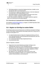 Projekt E-Akte OBA Soweit die neue Stelle keine Behörde in der Zuständigkeit des Bundesarchivs ist, ist auch im Benehmen mit diesem die archivische Zuständigkeit für das übergebene und künftig entstehende Schriftgut neu festzulegen. Die Abgabe richtet sich nach dem in Kapitel 16.3 beschriebenen Verfahren. Bei der Abgabe von Schriftgut an andere Stellen ist OBA zu beteiligen. VV-BMF-Bürodienste Stand: November 2022 Seite 57 von 64