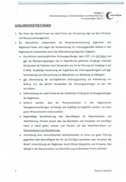 Anlage 5 Dienstanweisung zur Dokumentation und Aktenführung im Auswärtigen Dienst % GC & AUSLANDSVERTRETUNGEN 1. Der Fokus der Kanzler*innen als Leiter*innen der Verwaltung liegt auf dem Personal- und Ressourcenmanagement. 2. Sie übernehmen insbesondere die Personalverantwortung gegenüber den Registrator*innen und tragen die Verantwortung für ordnungsgemäße Abläufe in den Registraturen insbesondere durch die Wahrnehmung folgender Aufgaben: e Durchführen kalenderjährlicher Ordnungsprüfungen (gem. Ziff. 1.5.4 DA_Doku) und ggf. der Bearbeitungsablagen (bei in Papierformat geführten Vorgänge) und/oder Stichproben bei Fallakten (zwei Stichproben pro AV bei Führung der Vorgänge in der E-Akte). Sorgfältige Auswertung der Ergebnisse der Ordnungsprüfung(en) und ggf. Vereinbarung und Überwachung von Maßnahmen zur Behebung von Mängeln; e ggf. Übersendung der durchgeführten Ordnungsprüfung auf Anforderung von Referat 121, das jährlich Stichproben der Ordnungsprüfungen an den AVs durchführt; e Unterstützung der Leiter*innen bei der inhaltlichen Prüfung bei Ordnungsprüfungen der Registratur; e Aufsicht” darüber, dass bei Personalwechseln in den Registraturen Übergabeverhandlungen rechtzeitig und sorgfältig durchgeführt werden, um einen guten Wissenstransfer sicherzustellen; e Regelmäßige Sensibilisierung aller Beschäftigten für Dokumentation und Aktenführung. Hinweis darauf, dass das Bearbeiten und Verwalten von Schriftgut Hand in Hand gehen müssen und Verweis auf den SharePoint-Raum zur Dokumentation und Aktenführung: e Vermittlung einer wertschätzenden Aufmerksamkeit im Sinne von guter Führung gegenüber allen Beschäftigten der AV, die Schriftgut bearbeiten oder verwalten. Bei Bedarf Unterstützung der Registratur durch (Einzel-)Gespräche und Hinweise, falls Mängel in der Dokumentation und Aktenführung bei Bearbeiter*innen auftreten. 4 Stand: 01.08.2022